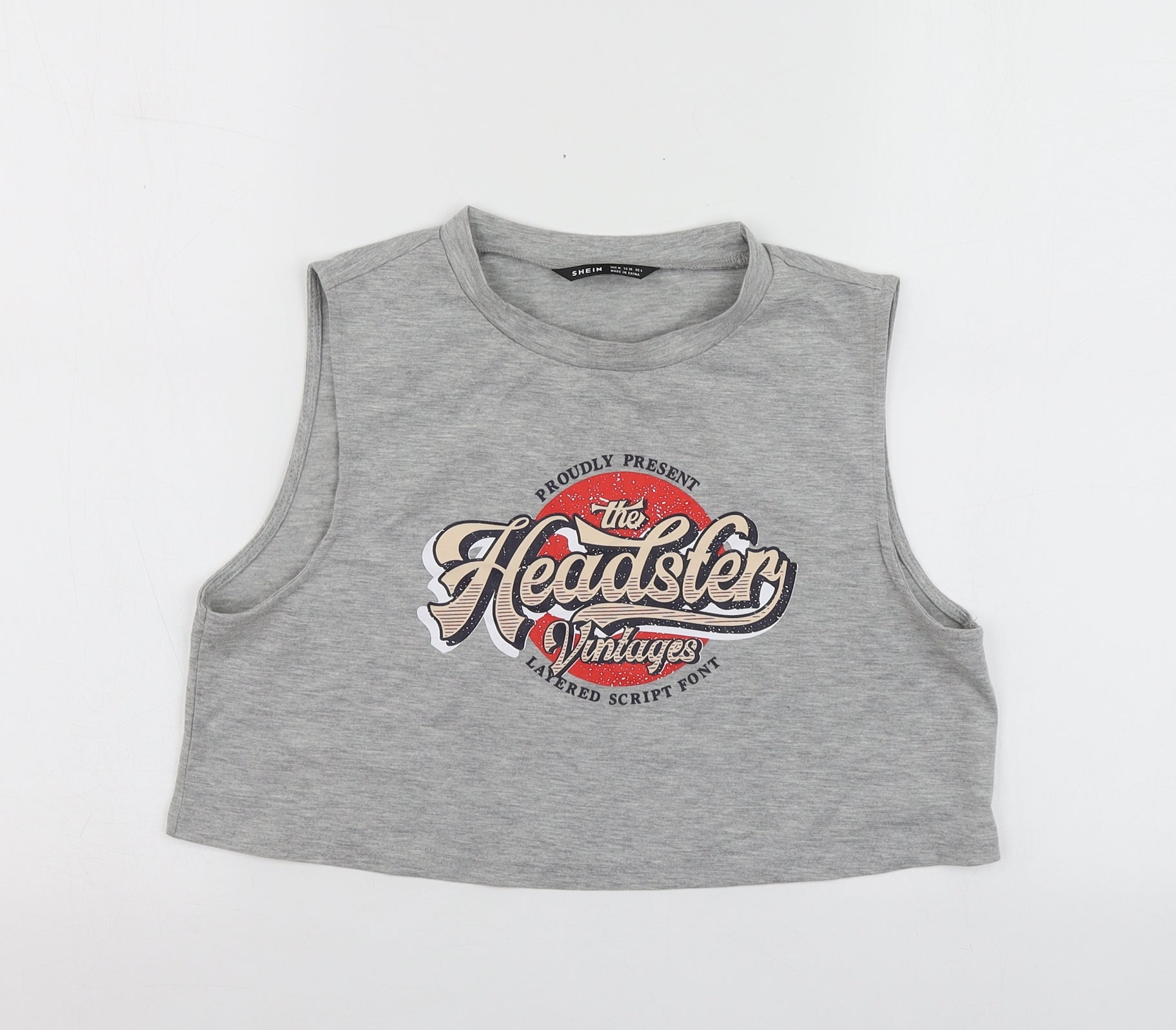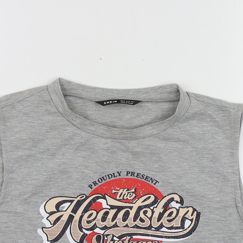SheIn Womens Grey Geometric Polyester Basic T-Shirt Size M Round Neck
