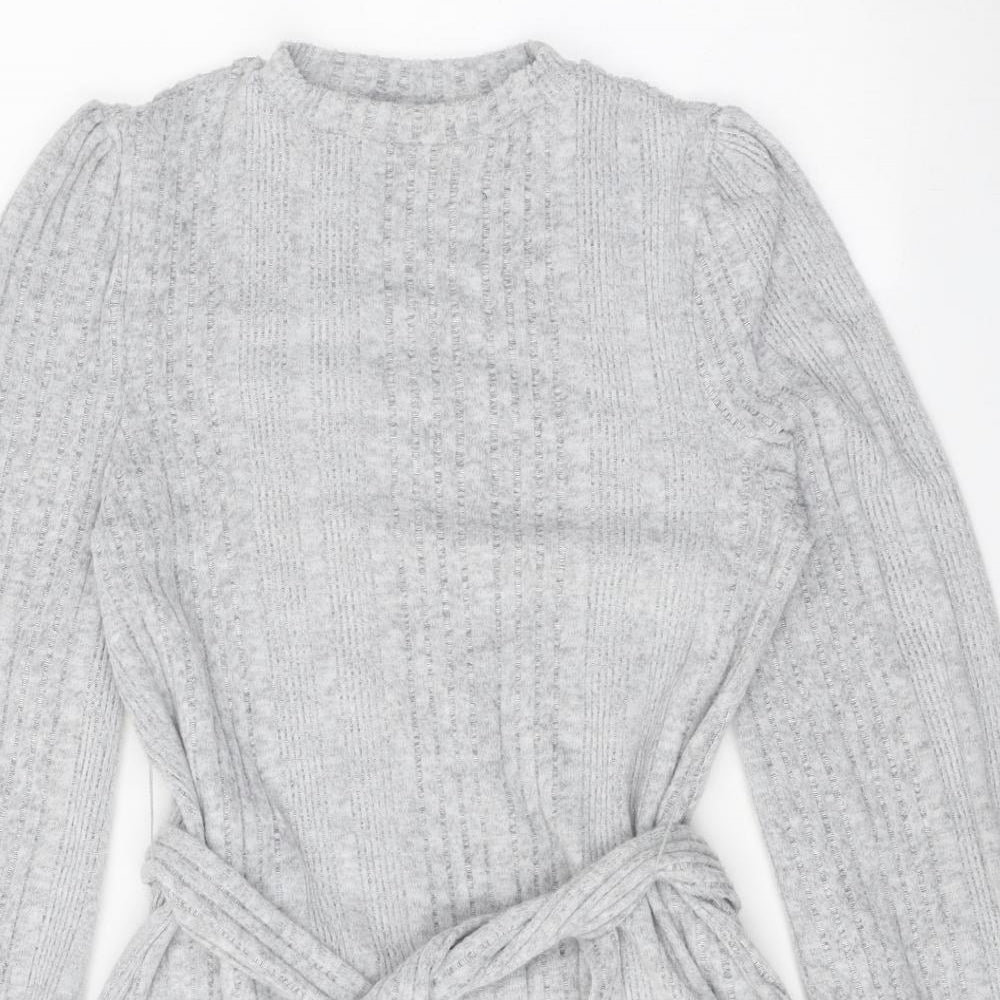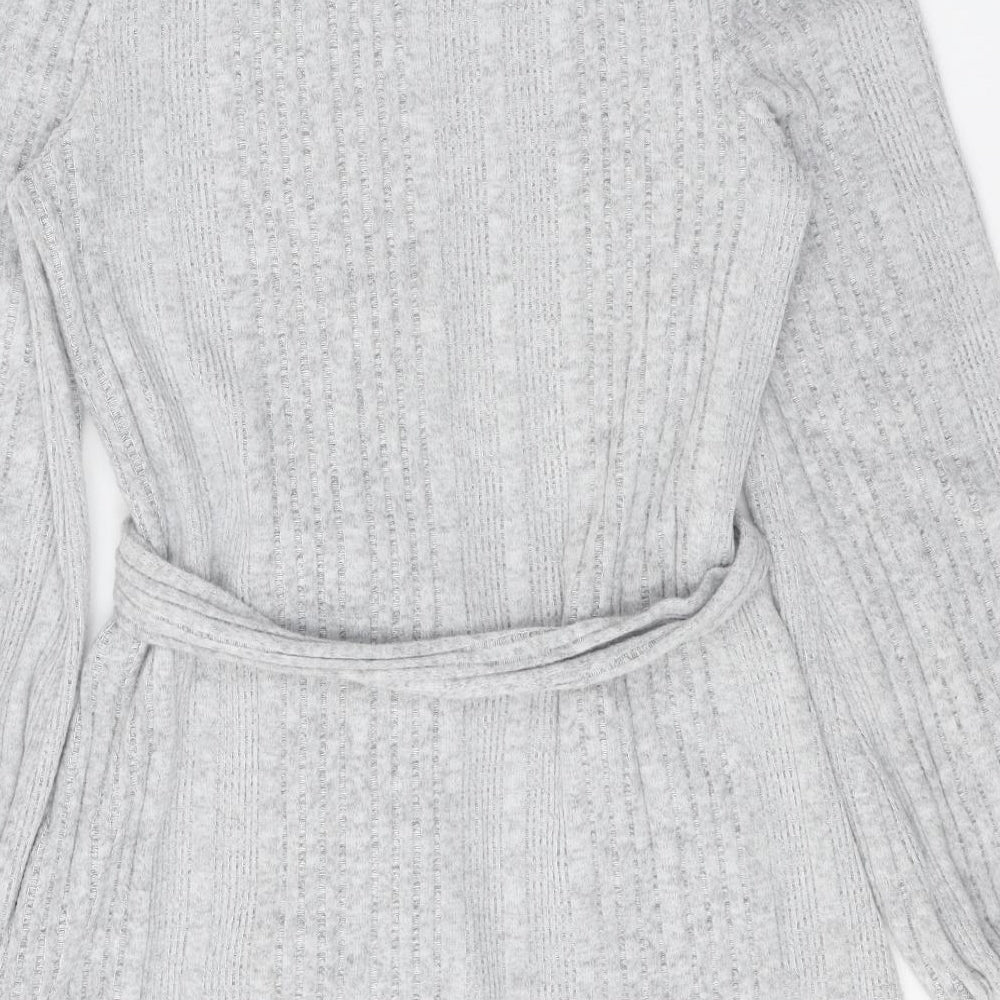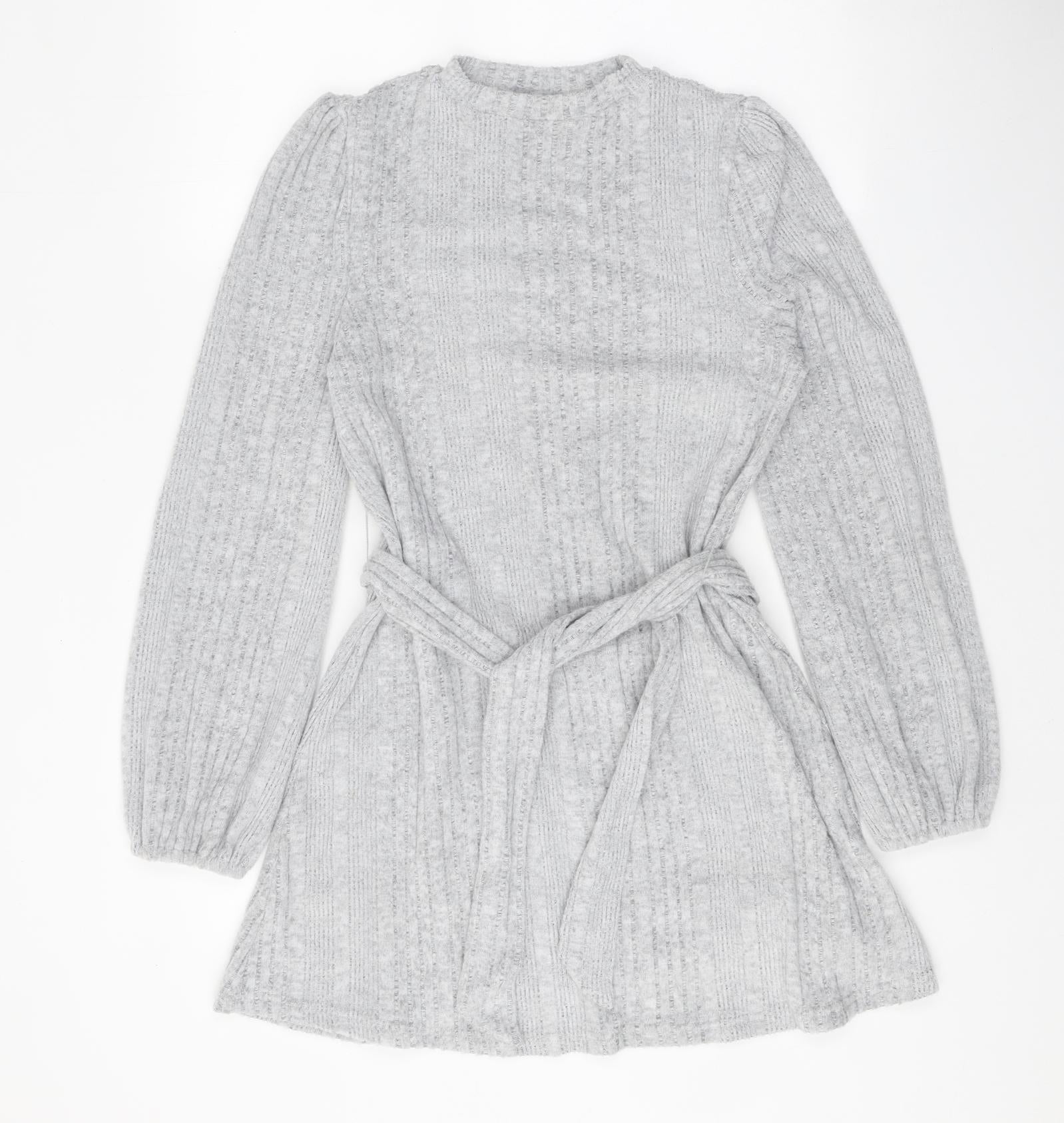 SheIn Womens Grey Polyester A-Line Size XS Round Neck Tie