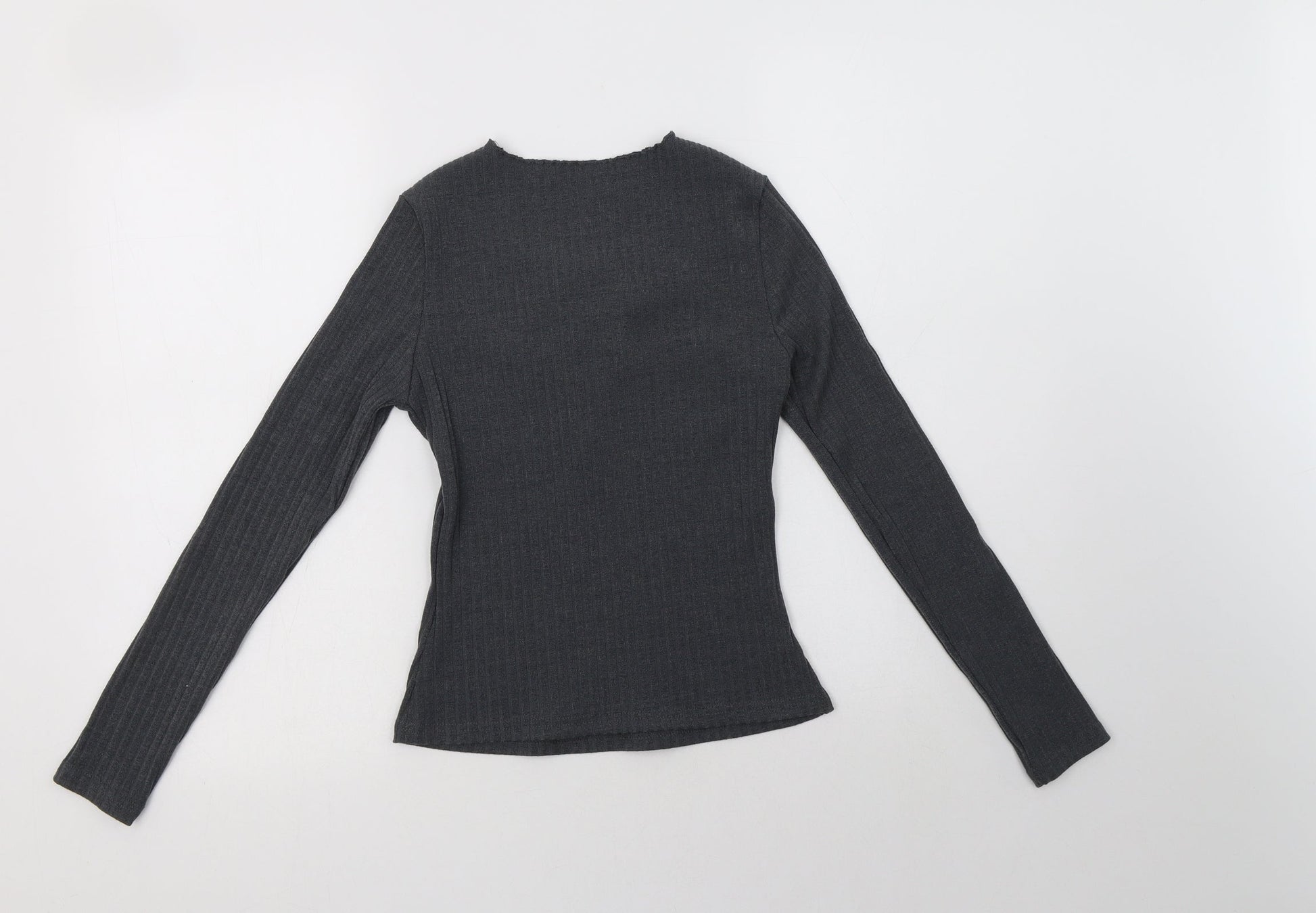 SheIn Womens Grey Polyester Basic Blouse Size XS V-Neck