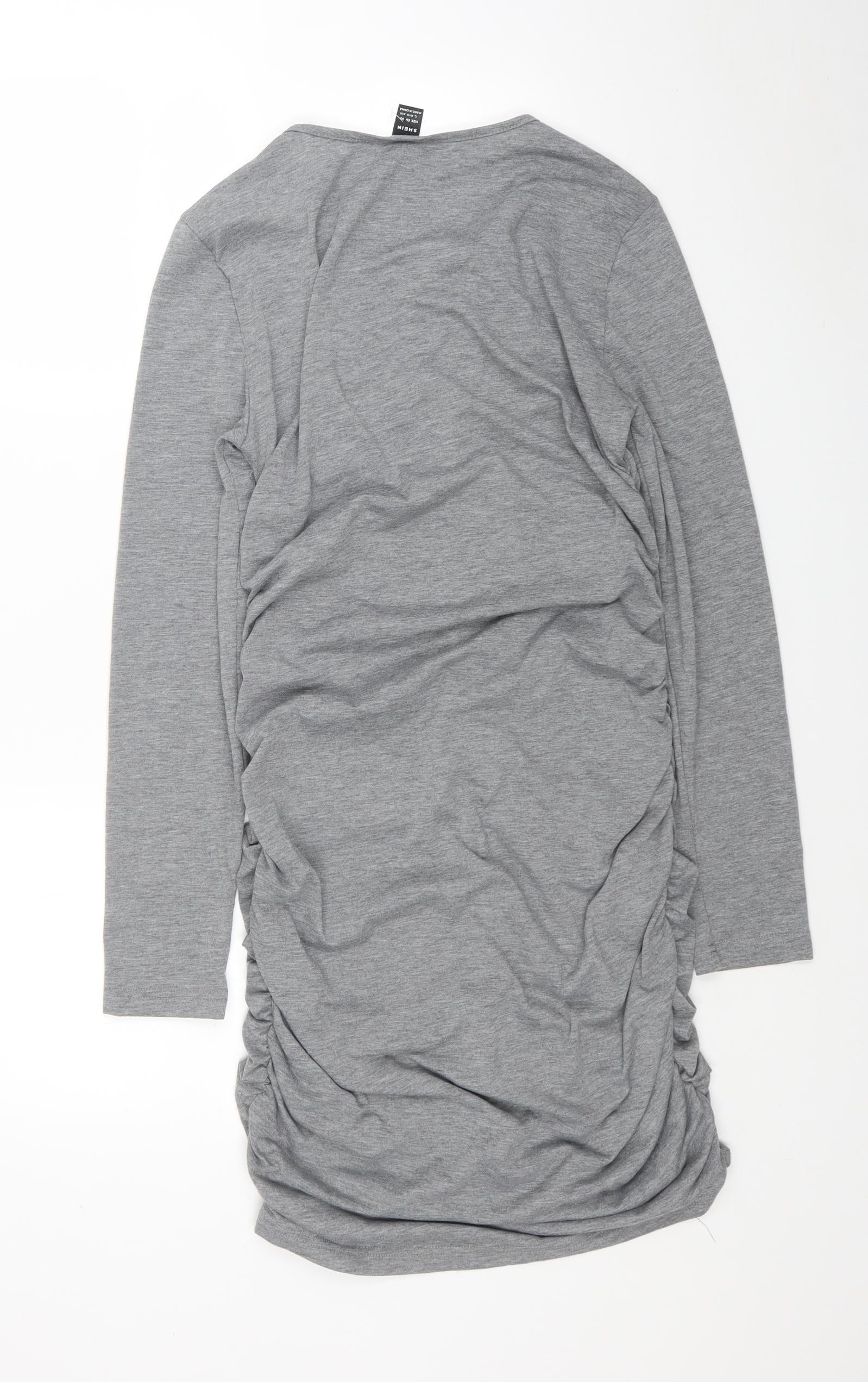 SheIn Womens Grey Polyester Bodycon Size L V-Neck Pullover