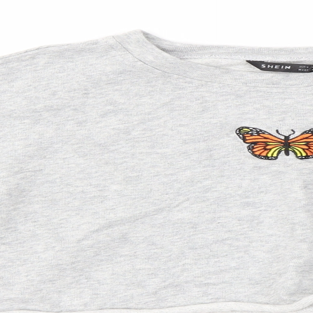 SheIn Womens Grey Round Neck 100% Cotton Pullover Jumper Size S