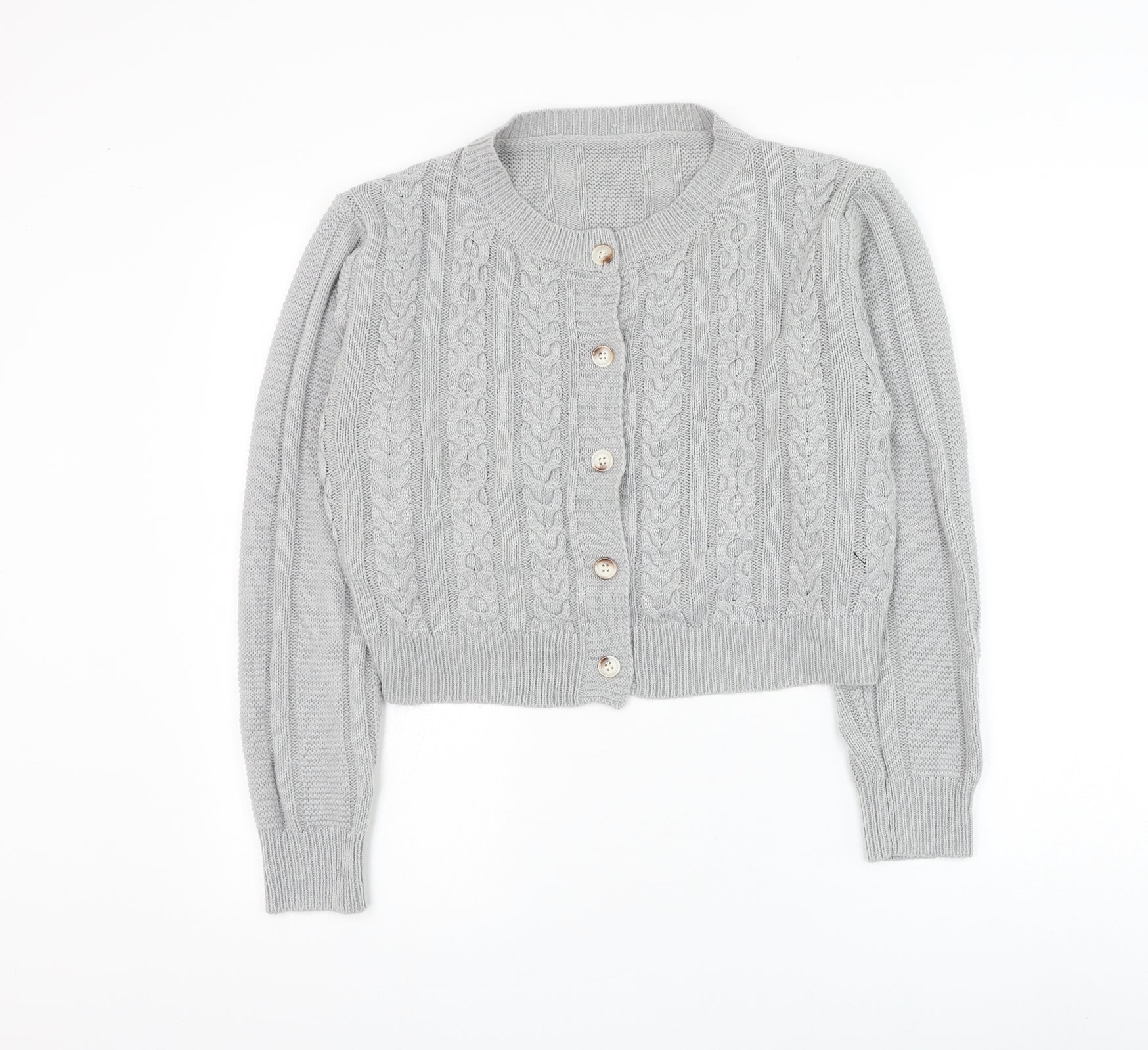 SheIn Womens Grey Round Neck Acrylic Cardigan Jumper Size S