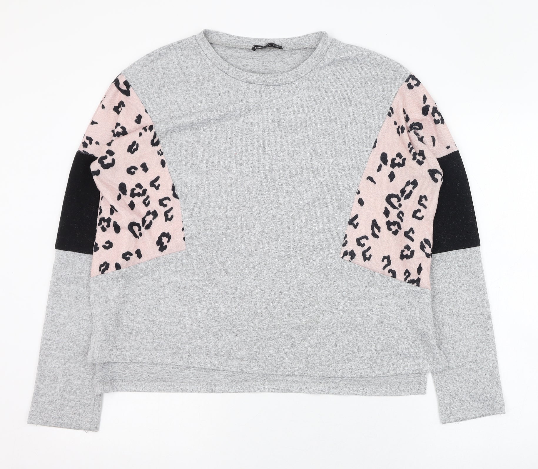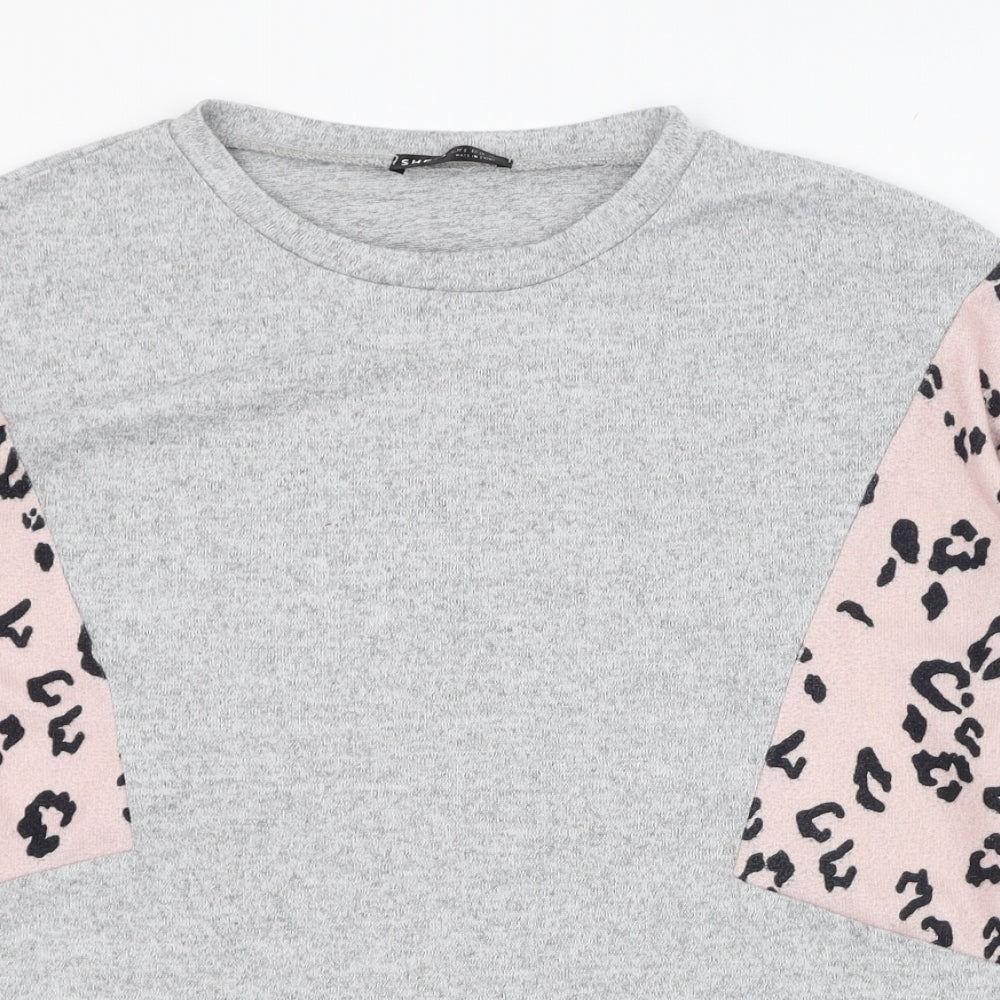 SheIn Womens Grey Round Neck Animal Print Polyester Pullover Jumper Size 8