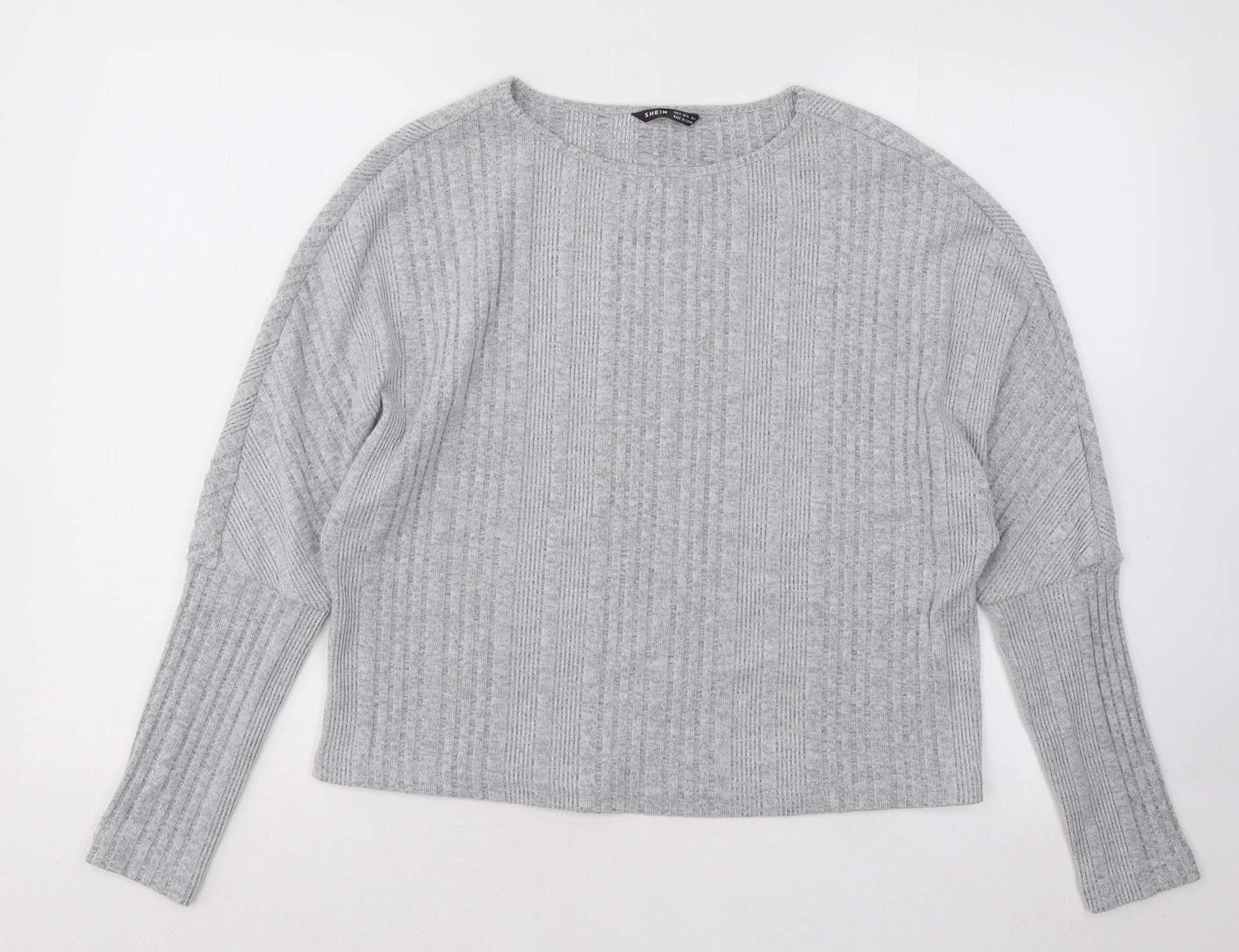 SheIn Womens Grey Round Neck Polyester Pullover Jumper Size S