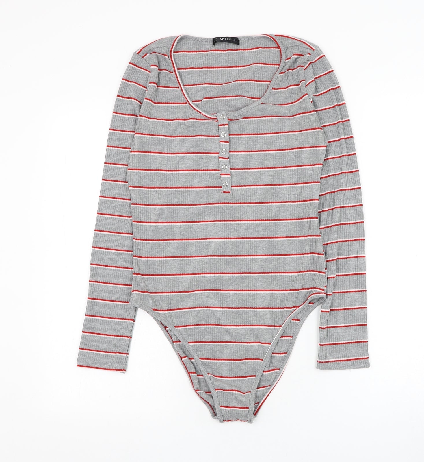 SheIn Womens Grey Striped Cotton Bodysuit One-Piece Size M Hook & Loop