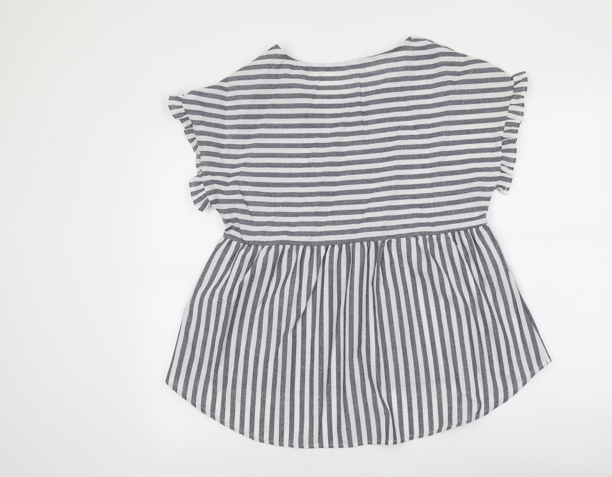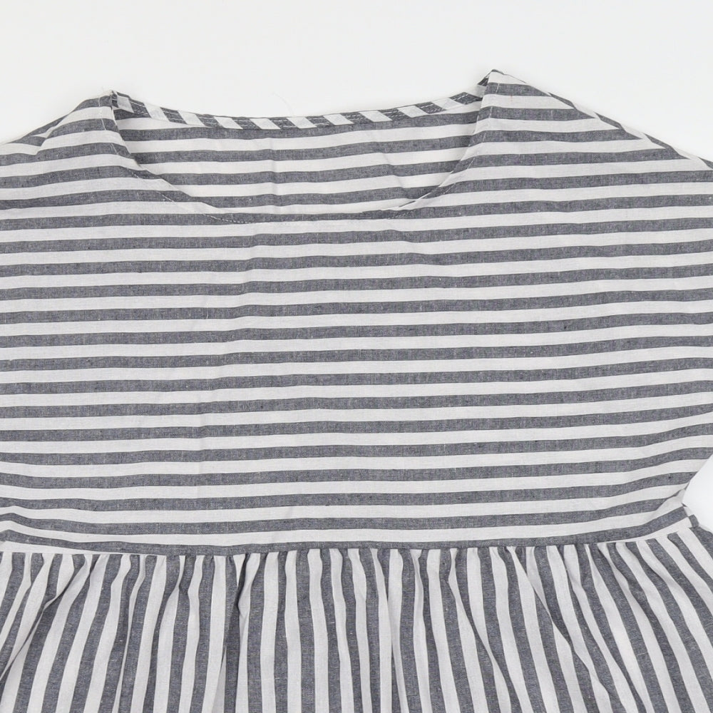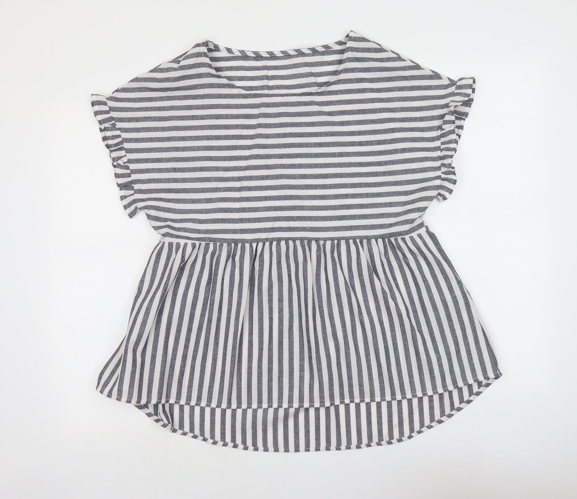 SheIn Womens Grey Striped Polyester Basic Blouse Size M Round Neck