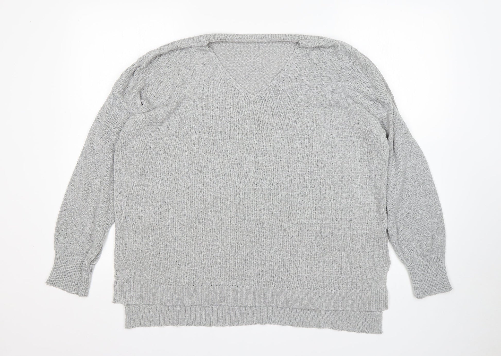 SheIn Womens Grey V-Neck Acrylic Pullover Jumper Size L