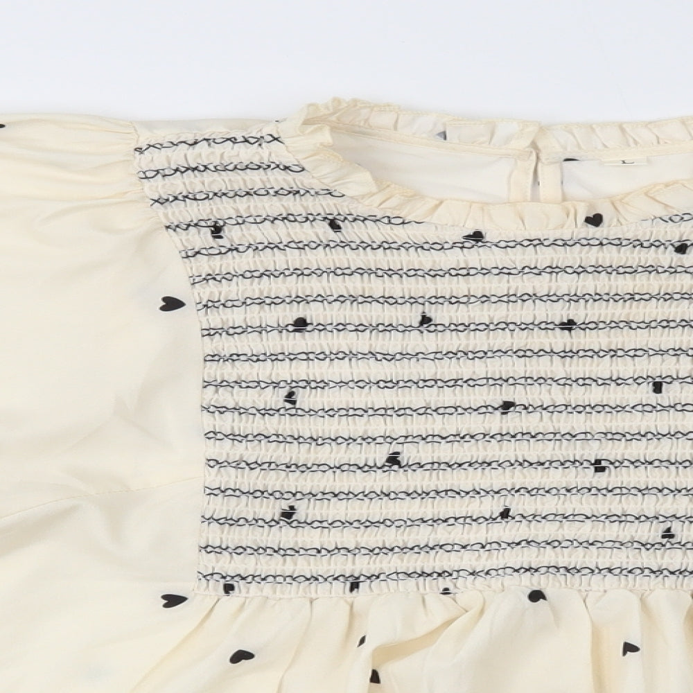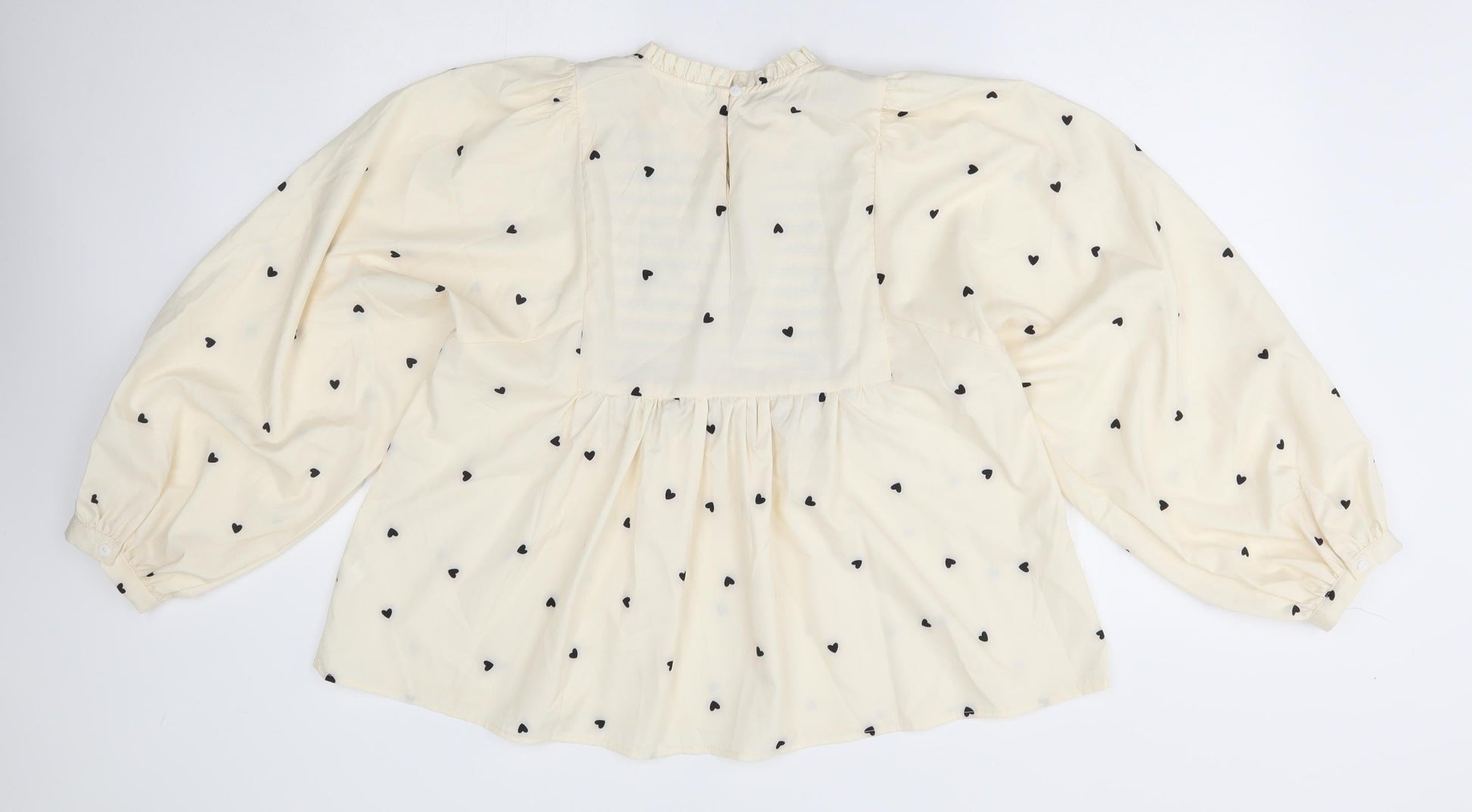 SheIn Womens Ivory Polka Dot Basic Blouse Size L