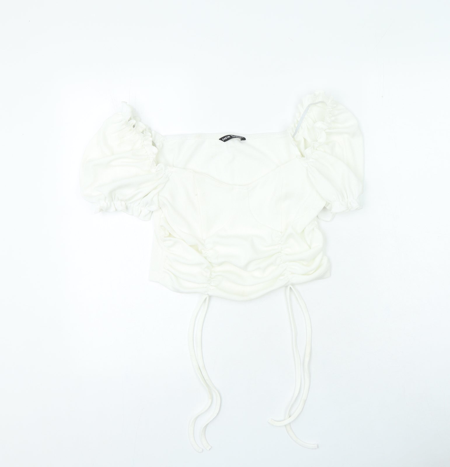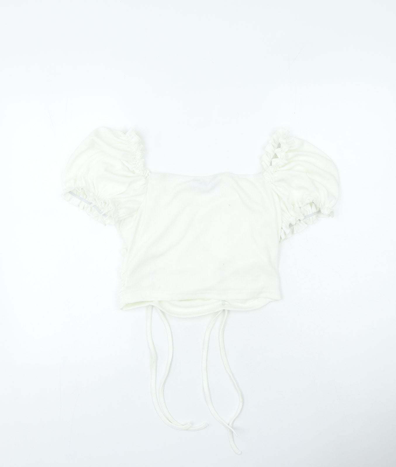 SheIn Womens Ivory Polyester Cropped T-Shirt Size L Sweetheart