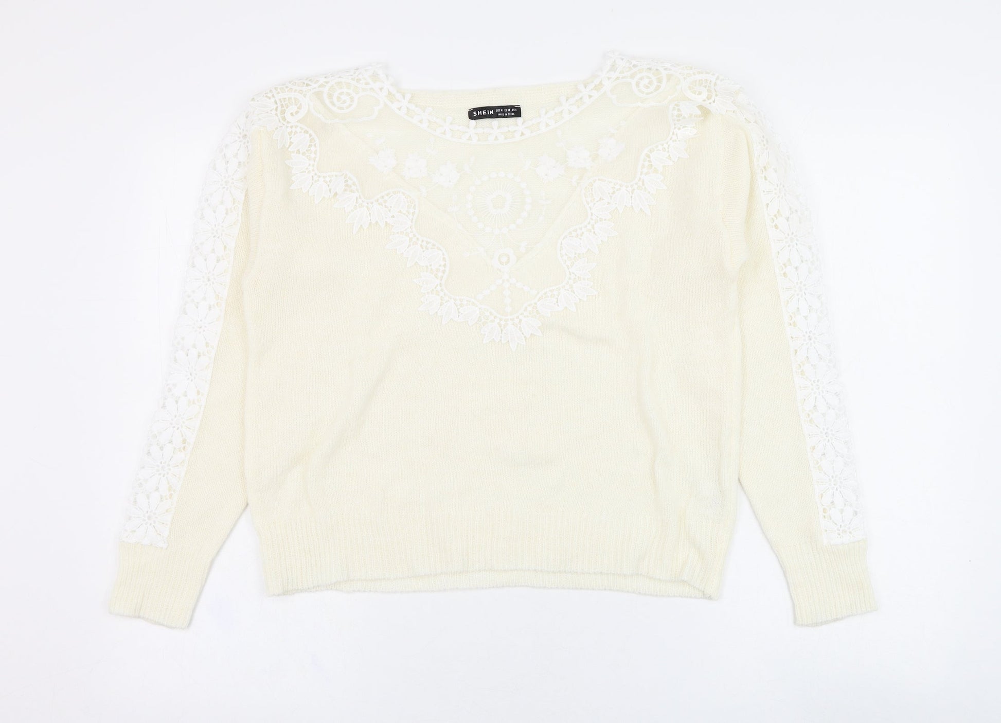 SheIn Womens Ivory Round Neck Polyester Pullover Jumper Size 10