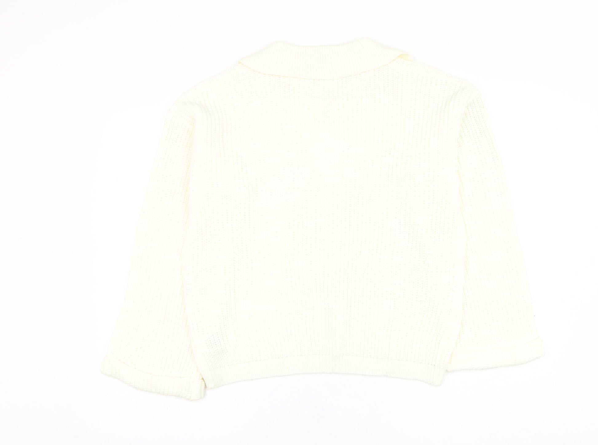 SheIn Womens Ivory V-Neck Acrylic Pullover Jumper Size 8