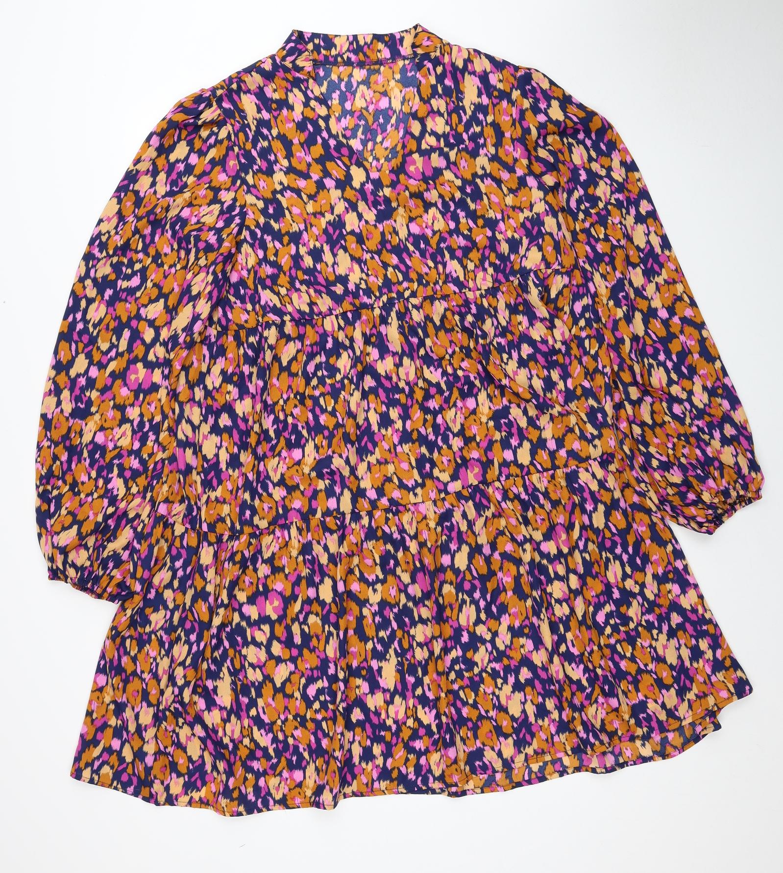 SheIn Womens Multicoloured Animal Print Polyester A-Line Size XL V-Neck Pullover - Leopard Print