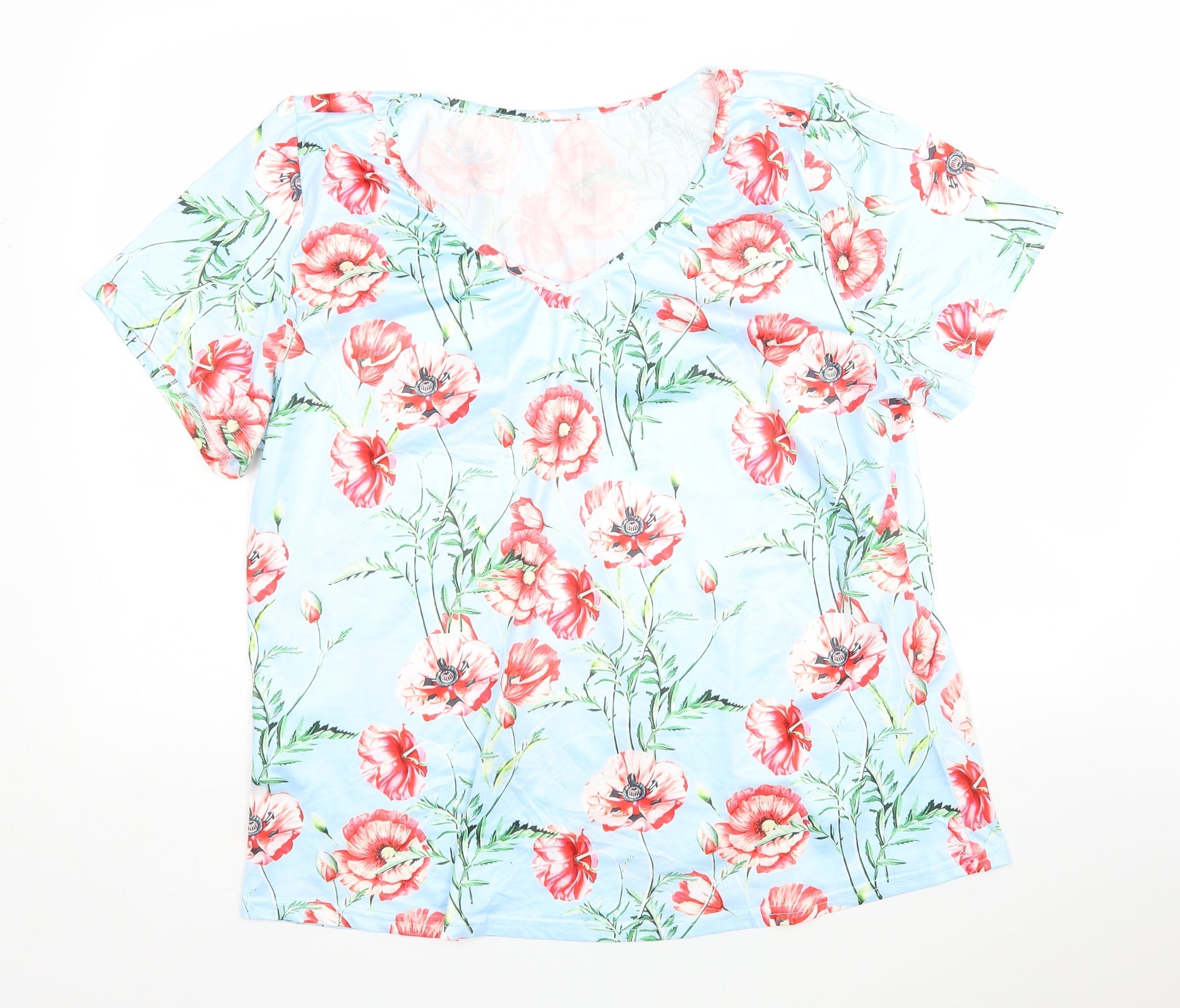 Shein Womens Multicoloured Floral Cotton Basic T-Shirt Size 3XL V-Neck