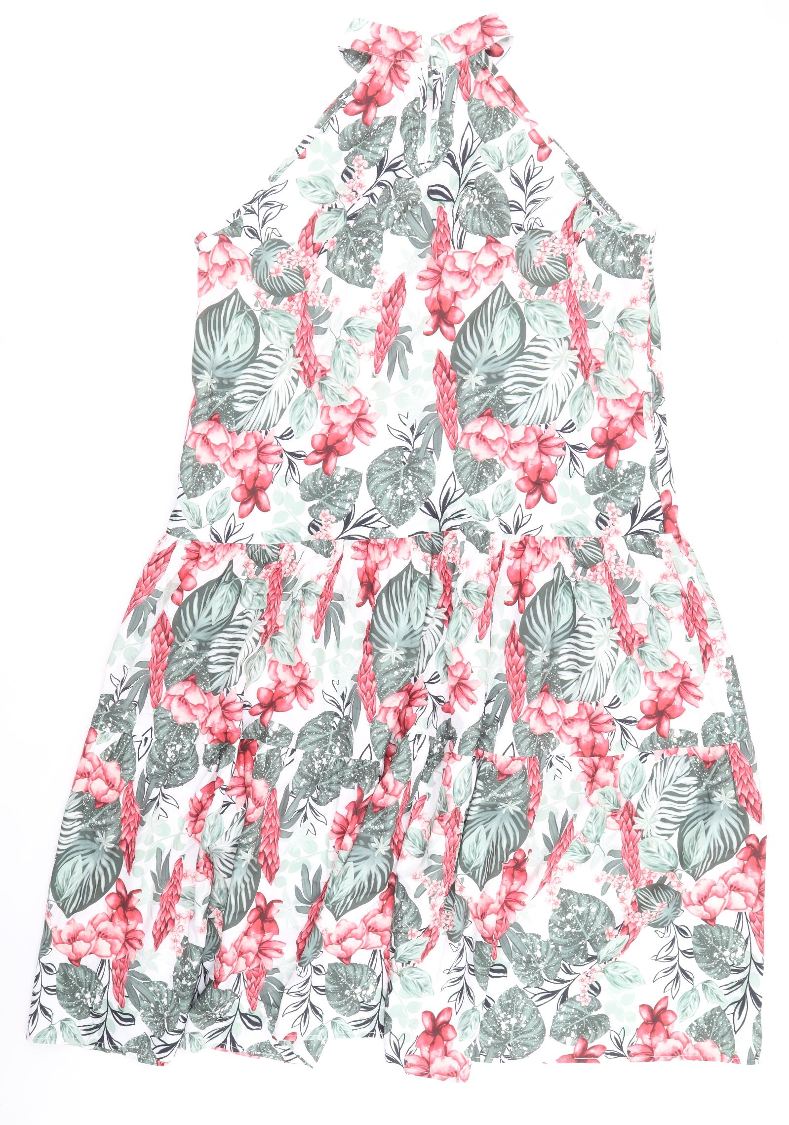 SheIn Womens Multicoloured Floral Polyester A-Line Size M Mock Neck Button