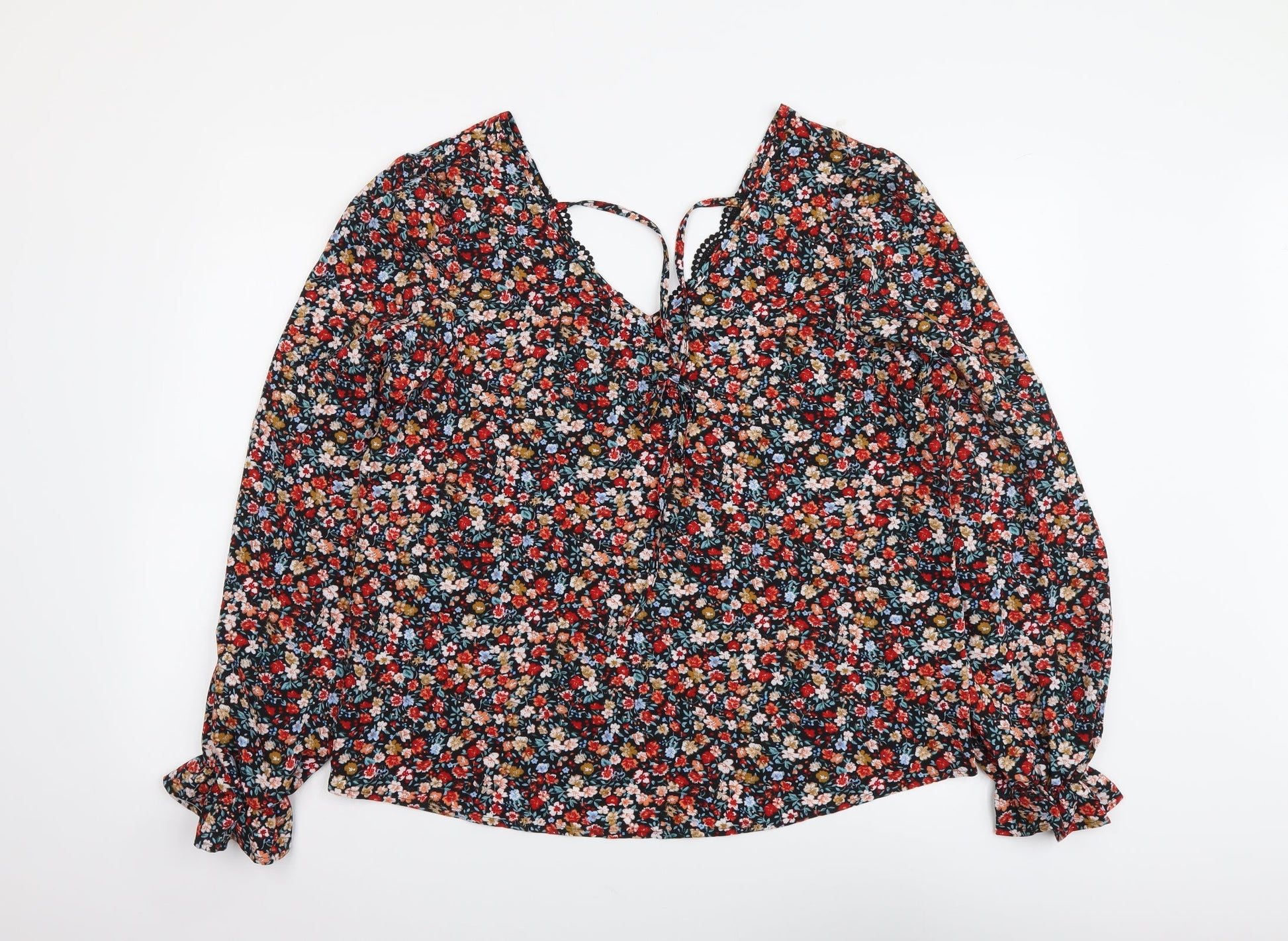 SheIn Womens Multicoloured Floral Polyester Basic Blouse Size L V-Neck - Lace neckline