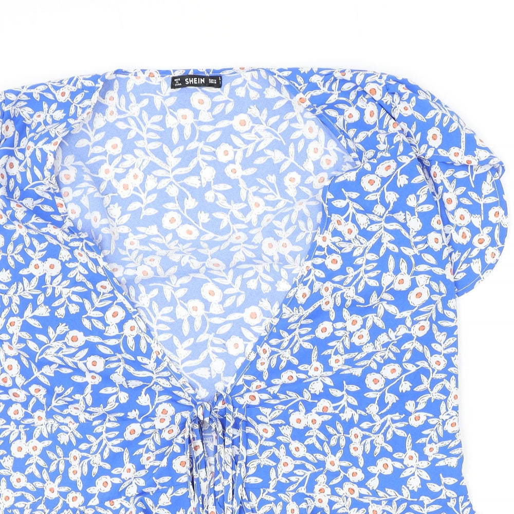 SheIn Womens Multicoloured Floral Polyester Basic Blouse Size M V-Neck