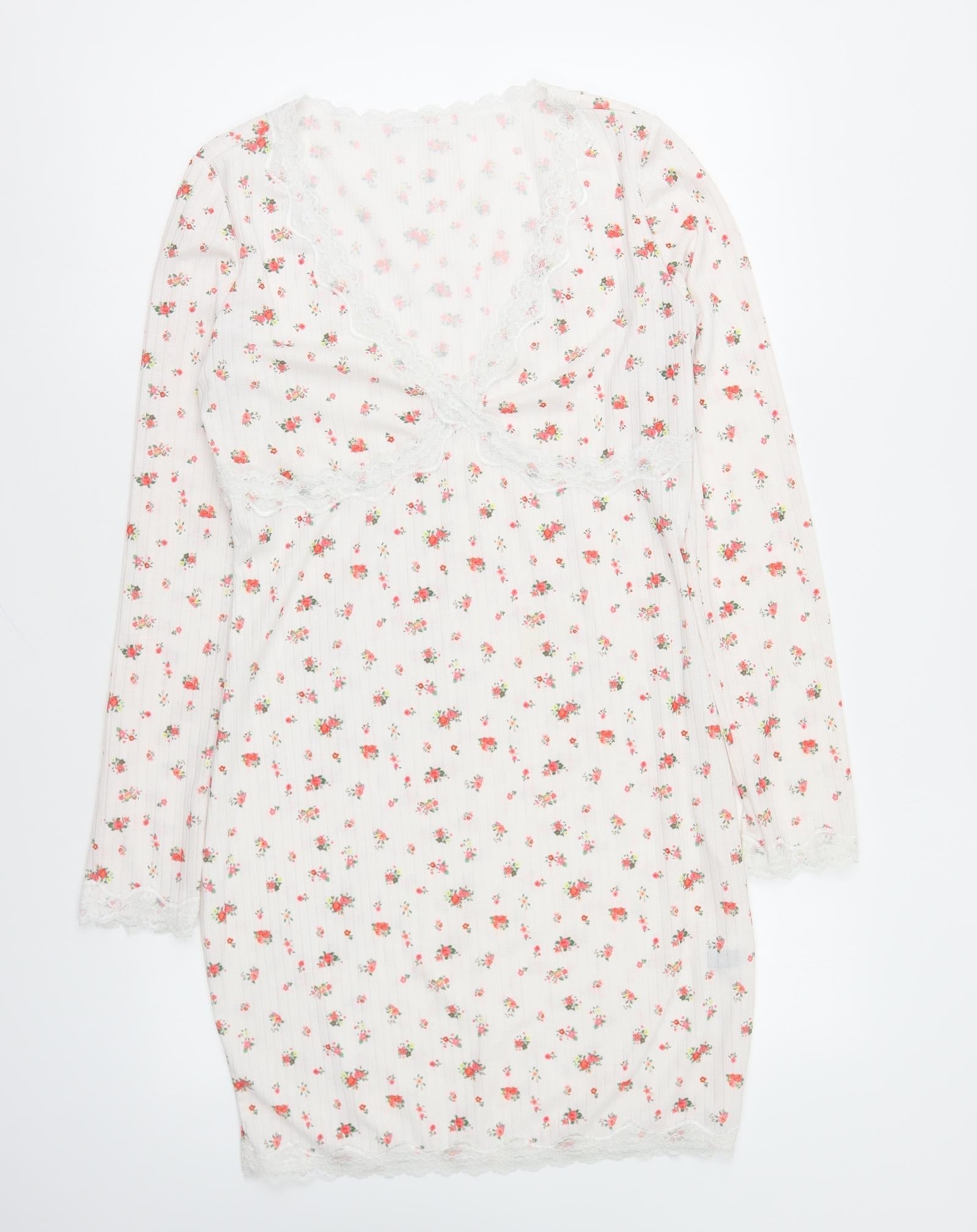 SheIn Womens Multicoloured Floral Polyester Bodycon Size L V-Neck Pullover - Lace Trim
