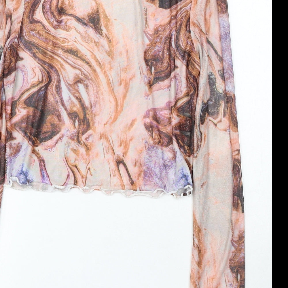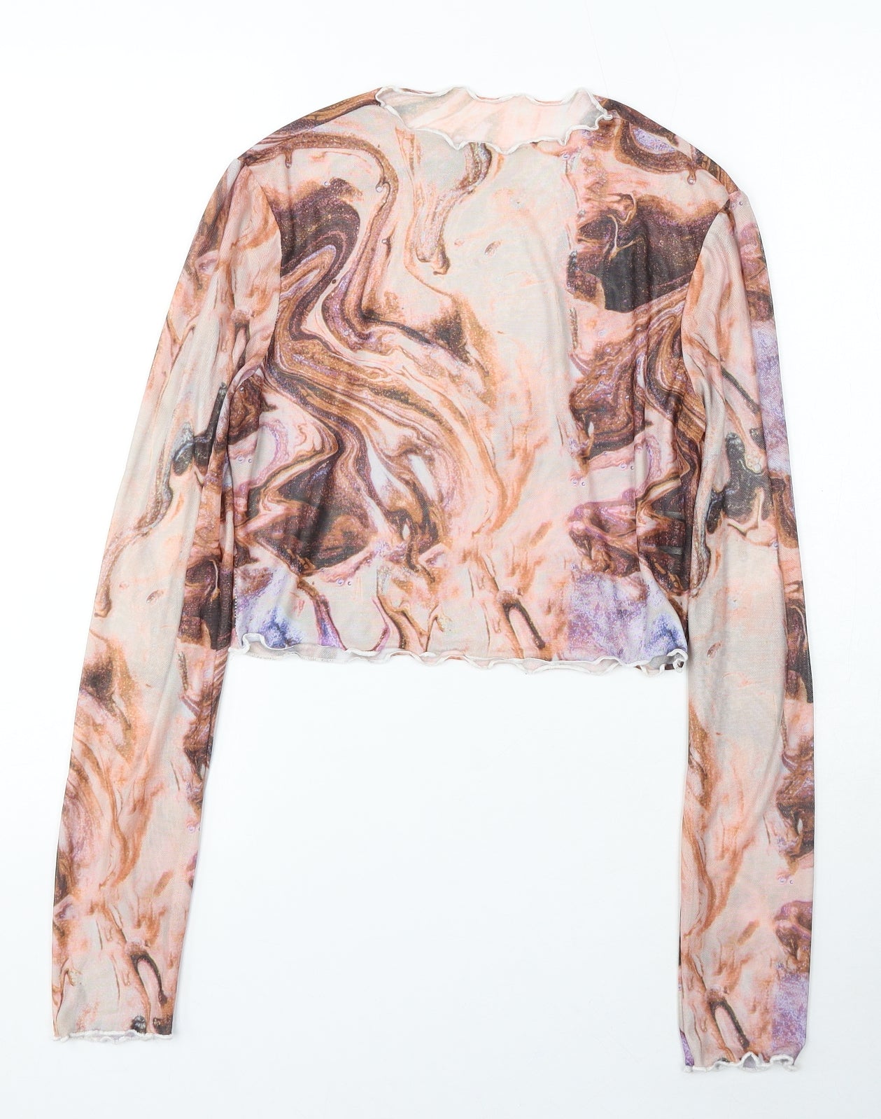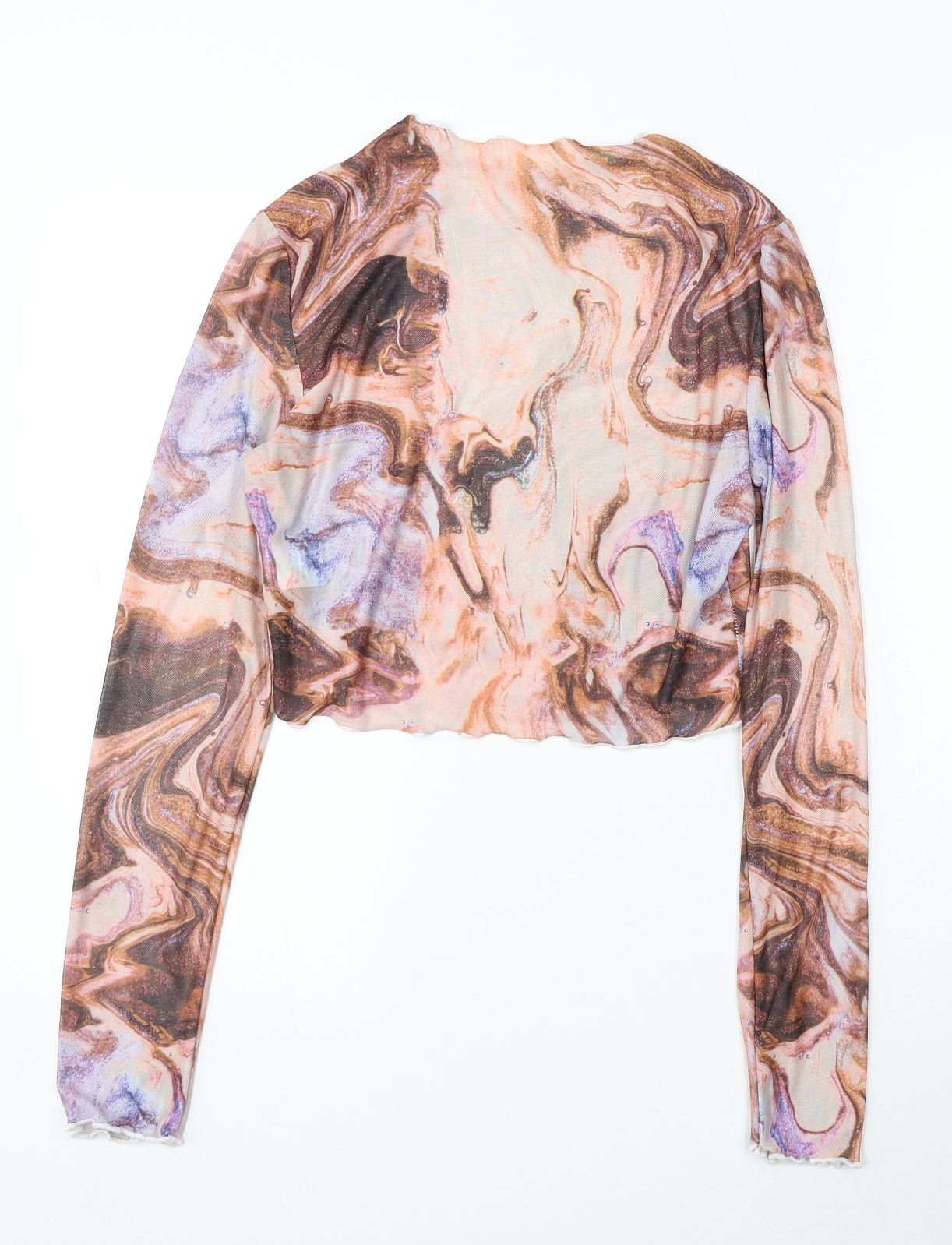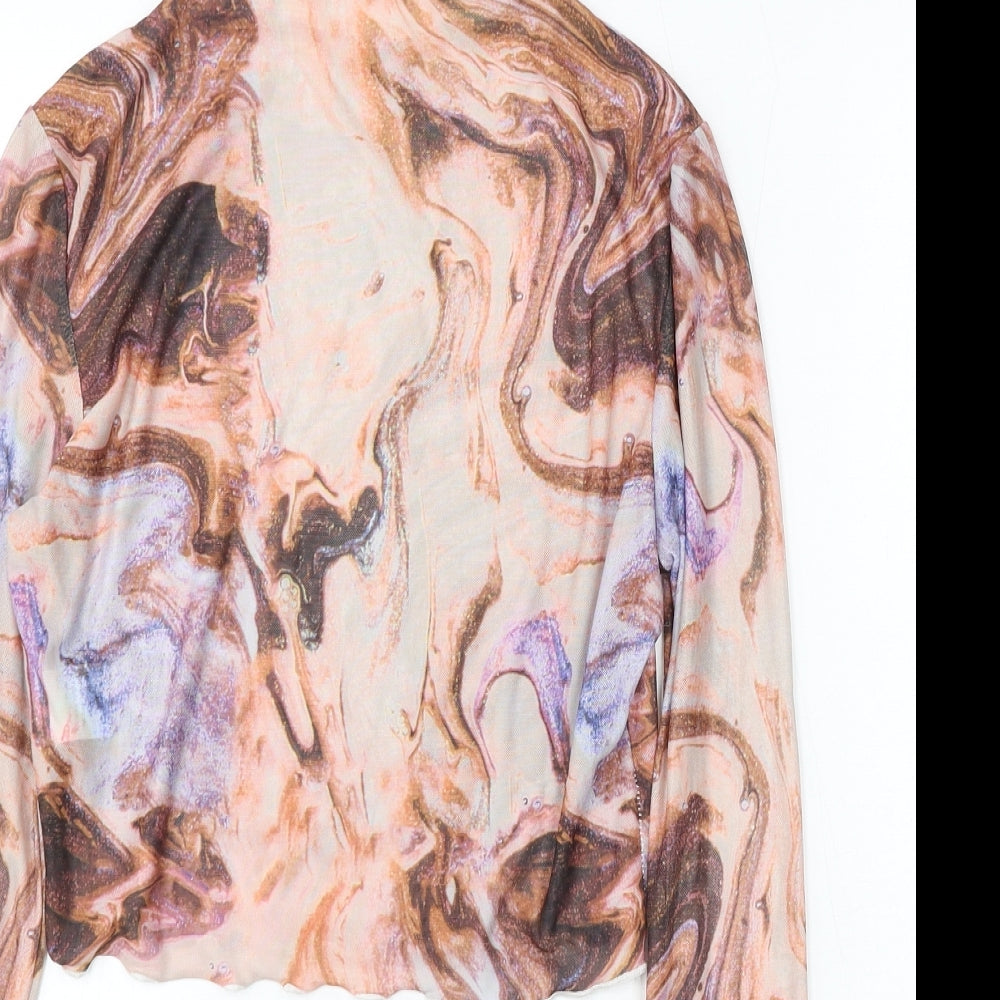 SheIn Womens Multicoloured Geometric Polyester Basic T-Shirt Size L Round Neck