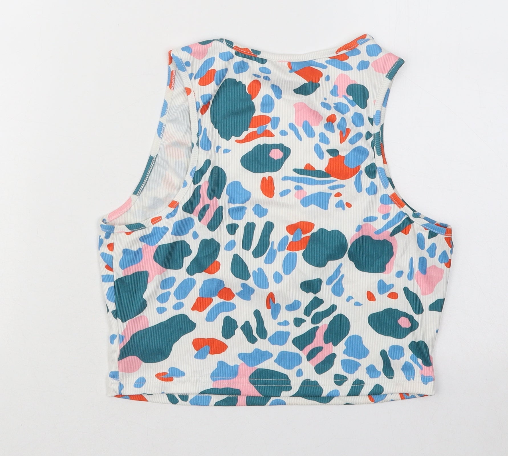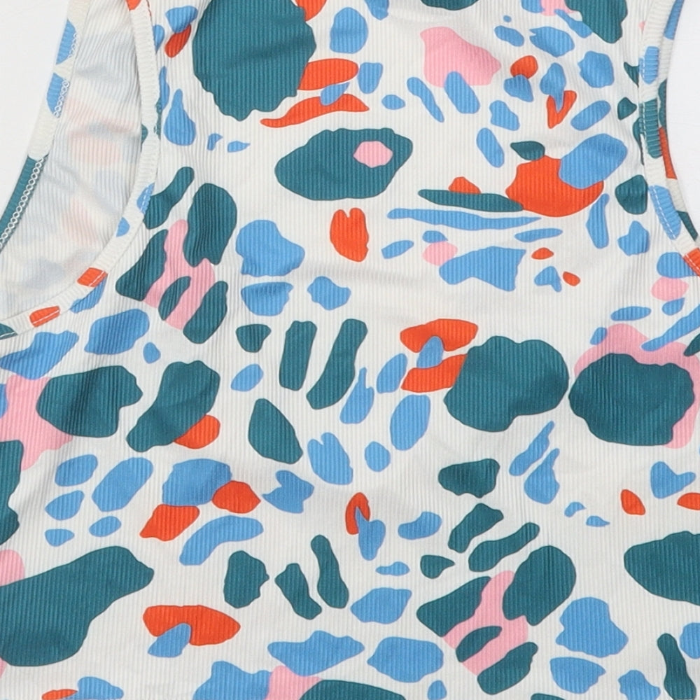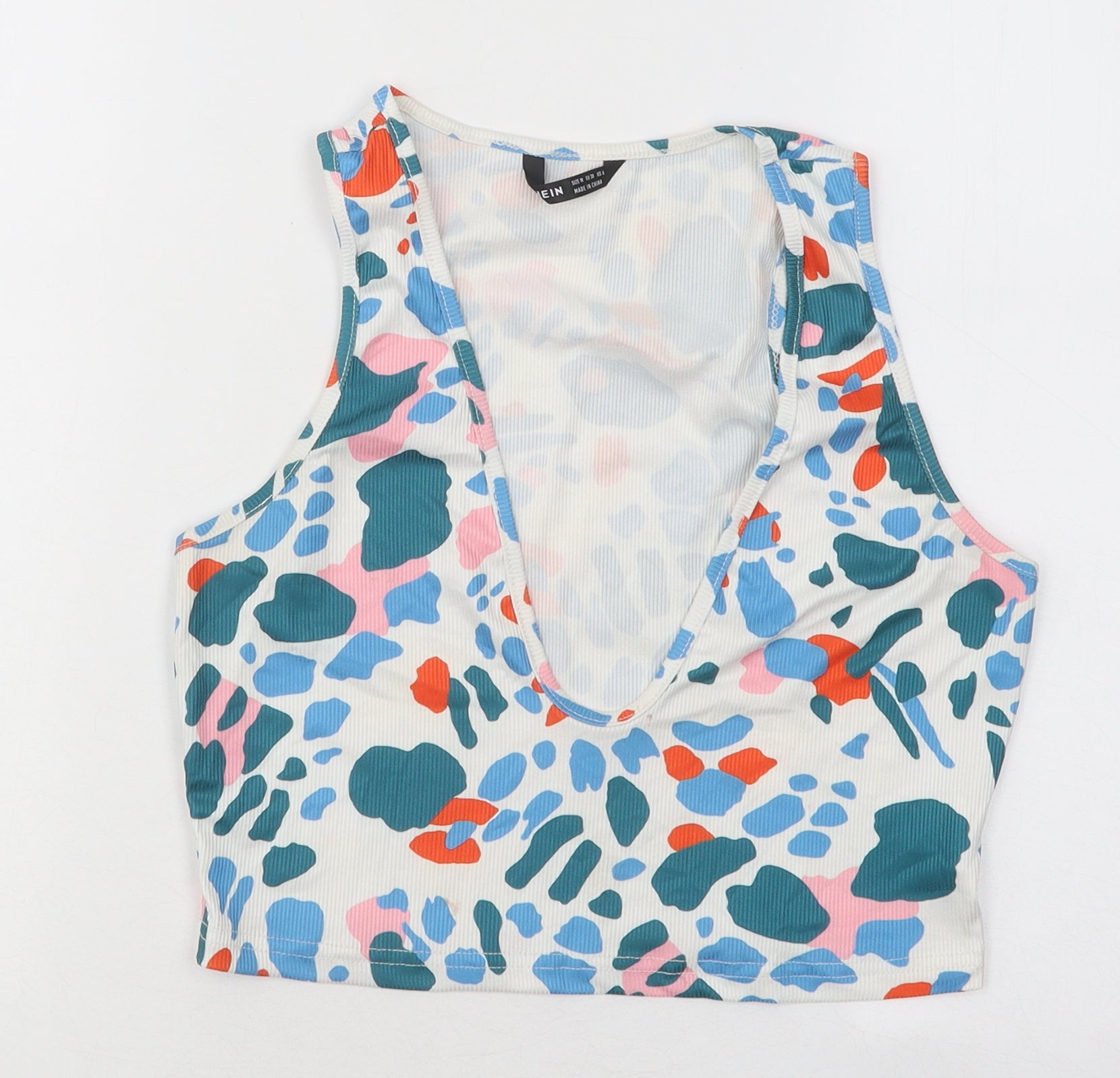 SheIn Womens Multicoloured Geometric Polyester Basic T-Shirt Size M V-Neck