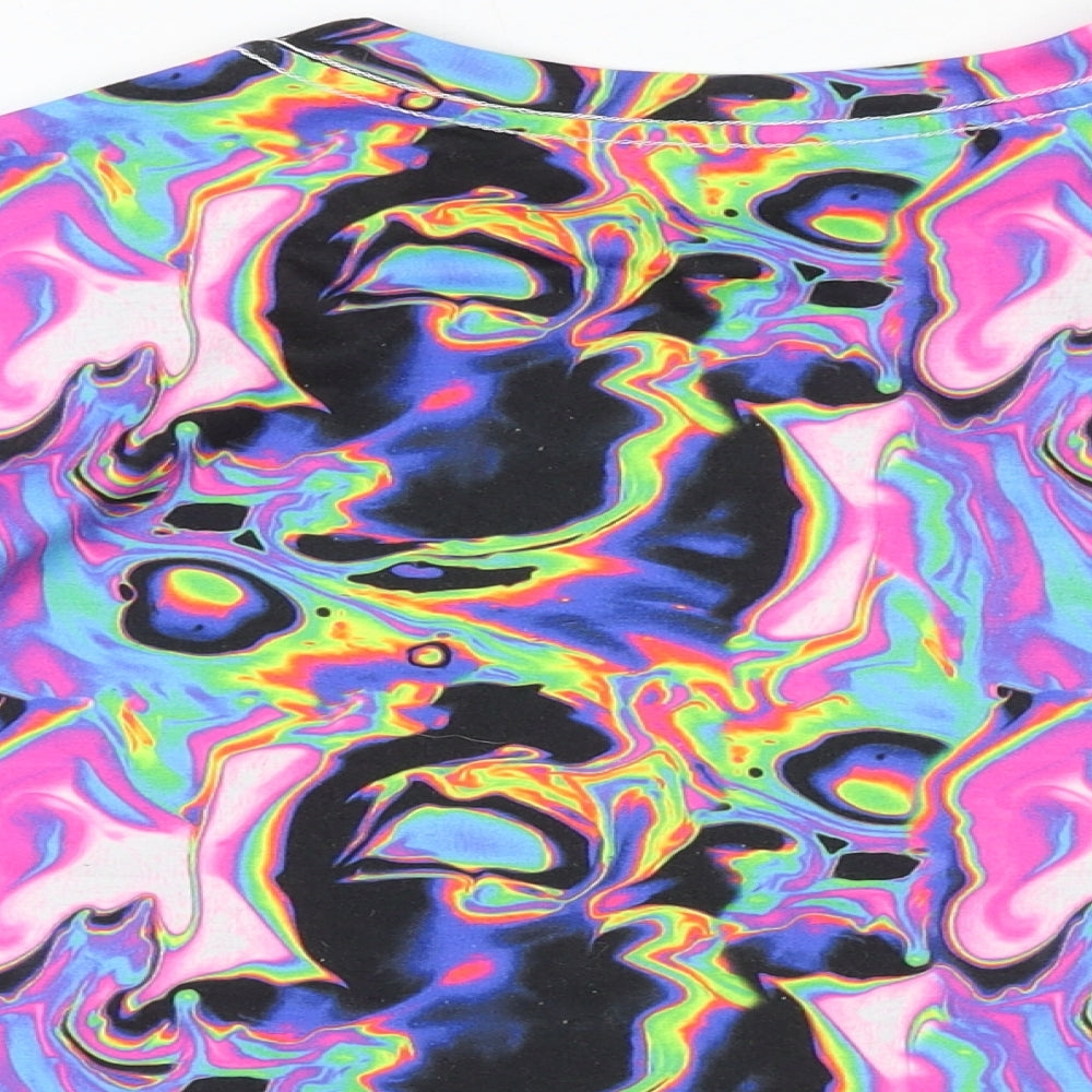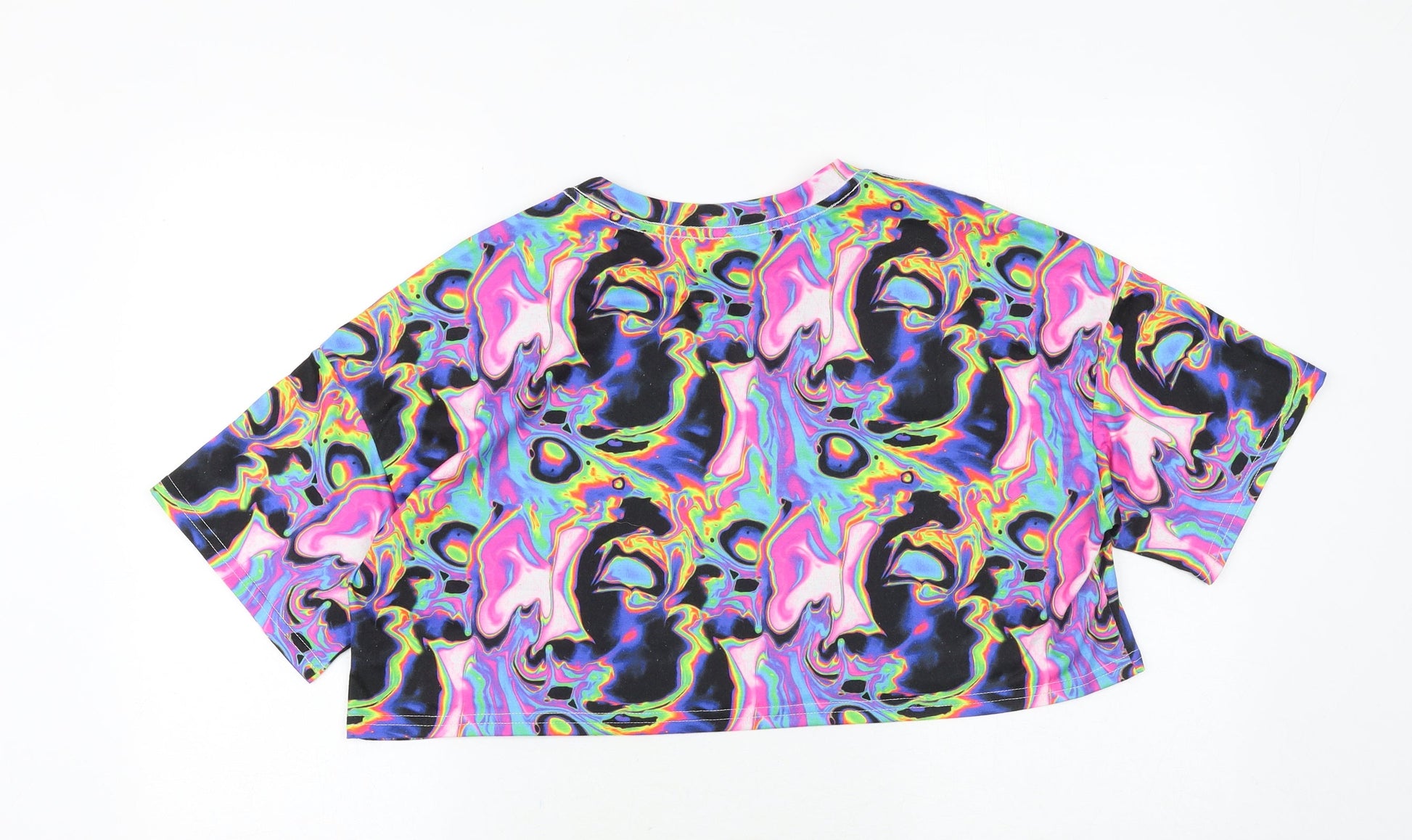 SheIn Womens Multicoloured Geometric Polyester Cropped T-Shirt Size S Round Neck