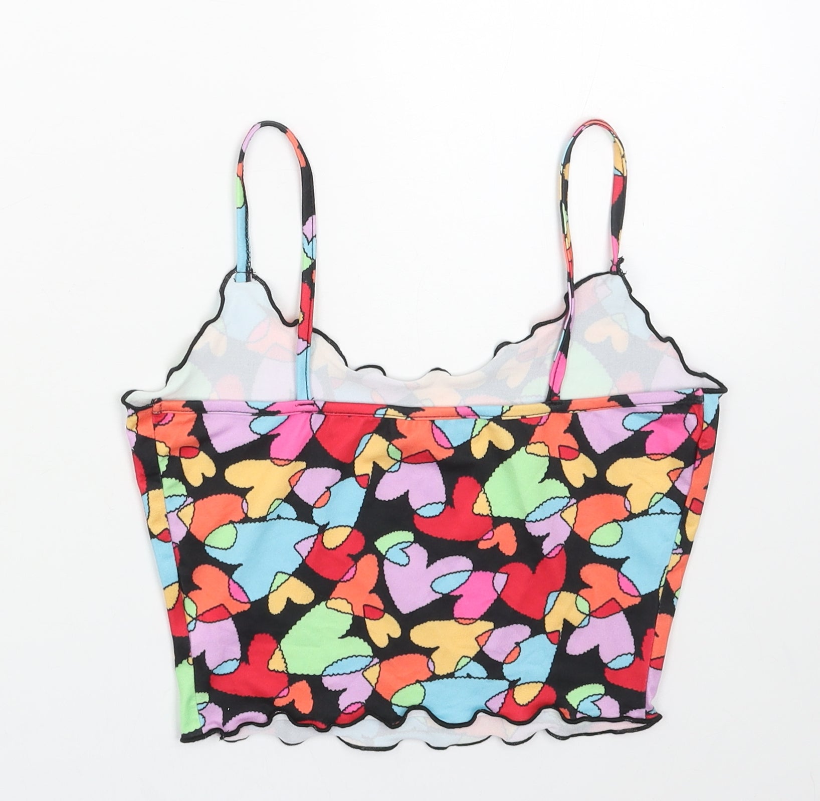 SheIn Womens Multicoloured Geometric Polyester Cropped Tank Size S Scoop Neck - Heart Pattern