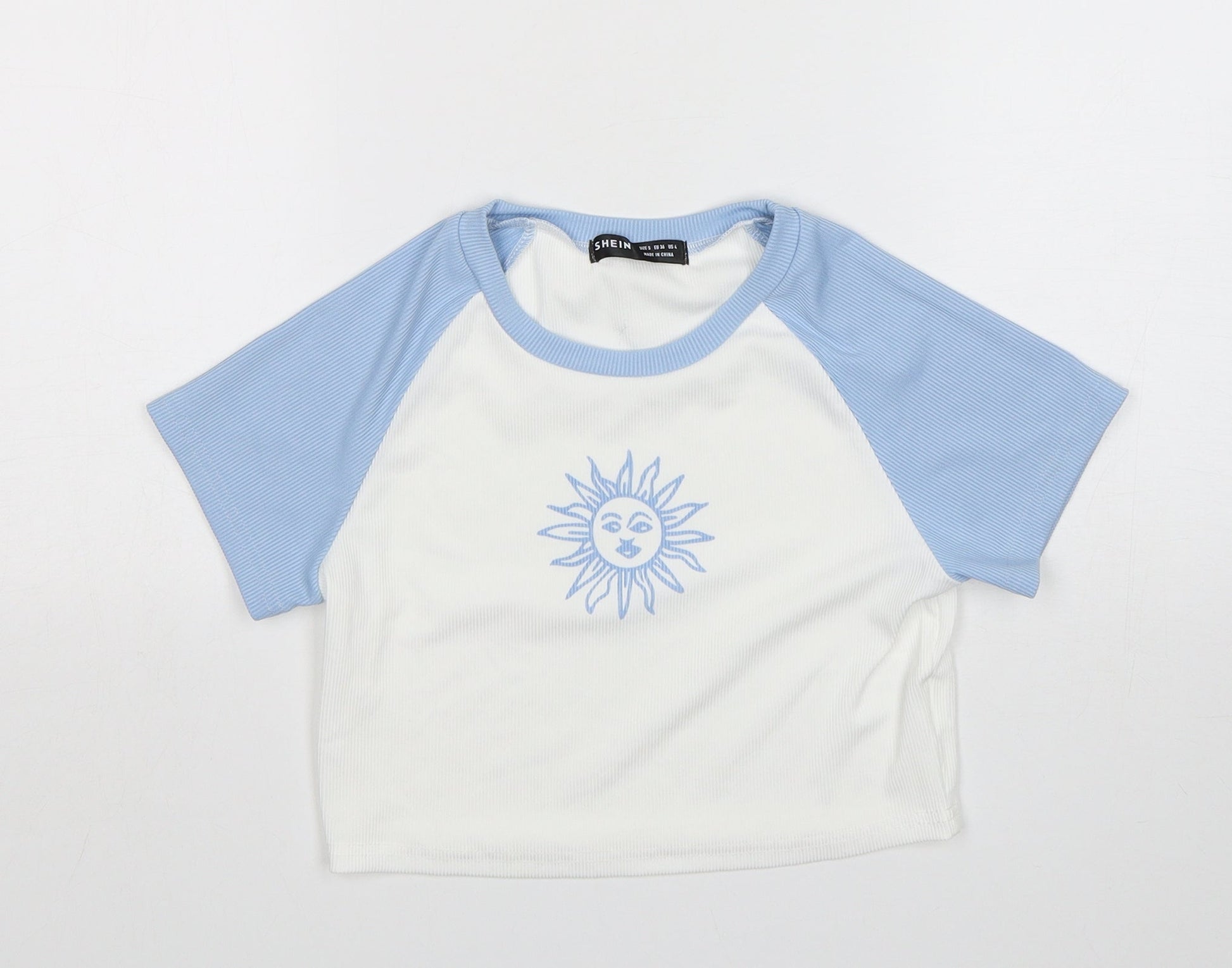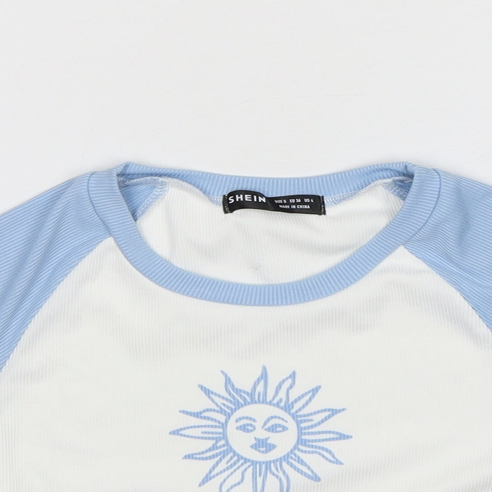 Shein Womens Multicoloured Polyester Cropped T-Shirt Size S Round Neck