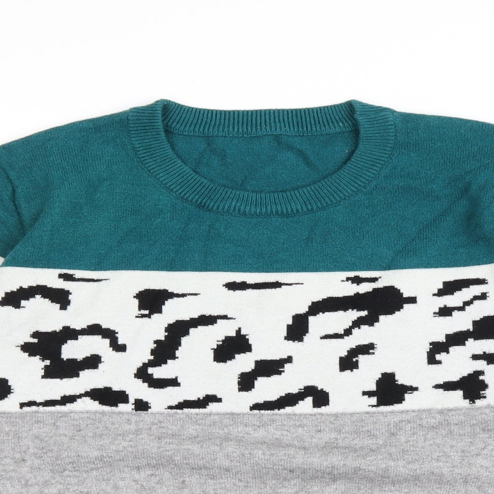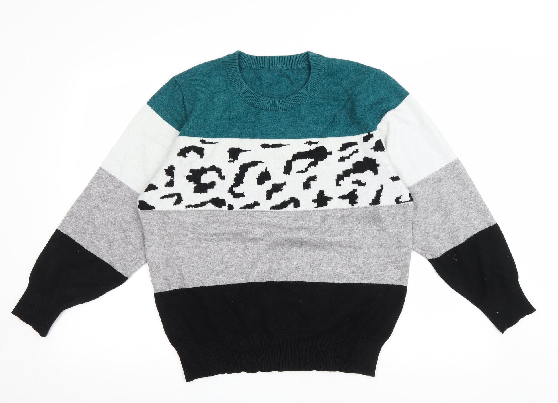 SheIn Womens Multicoloured Round Neck Striped Cotton Pullover Jumper Size L
