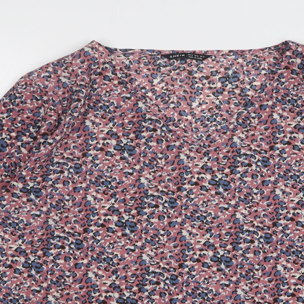 Shein Womens Pink Animal Print Polyester Basic Blouse Size 16 Round Neck