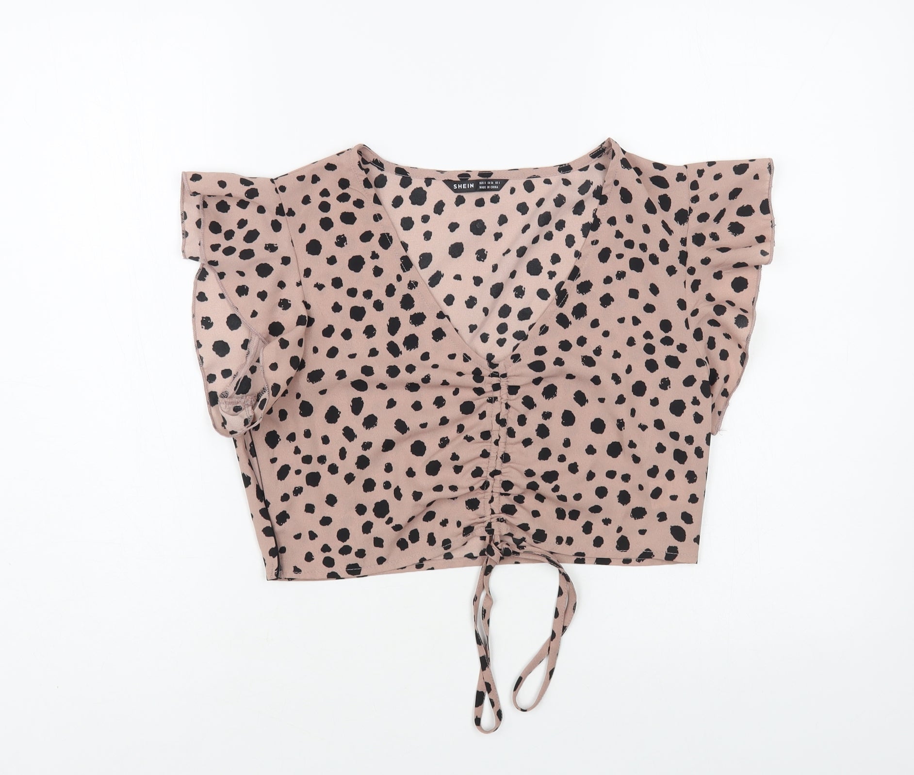 SheIn Womens Pink Animal Print Polyester Cropped Blouse Size S V-Neck