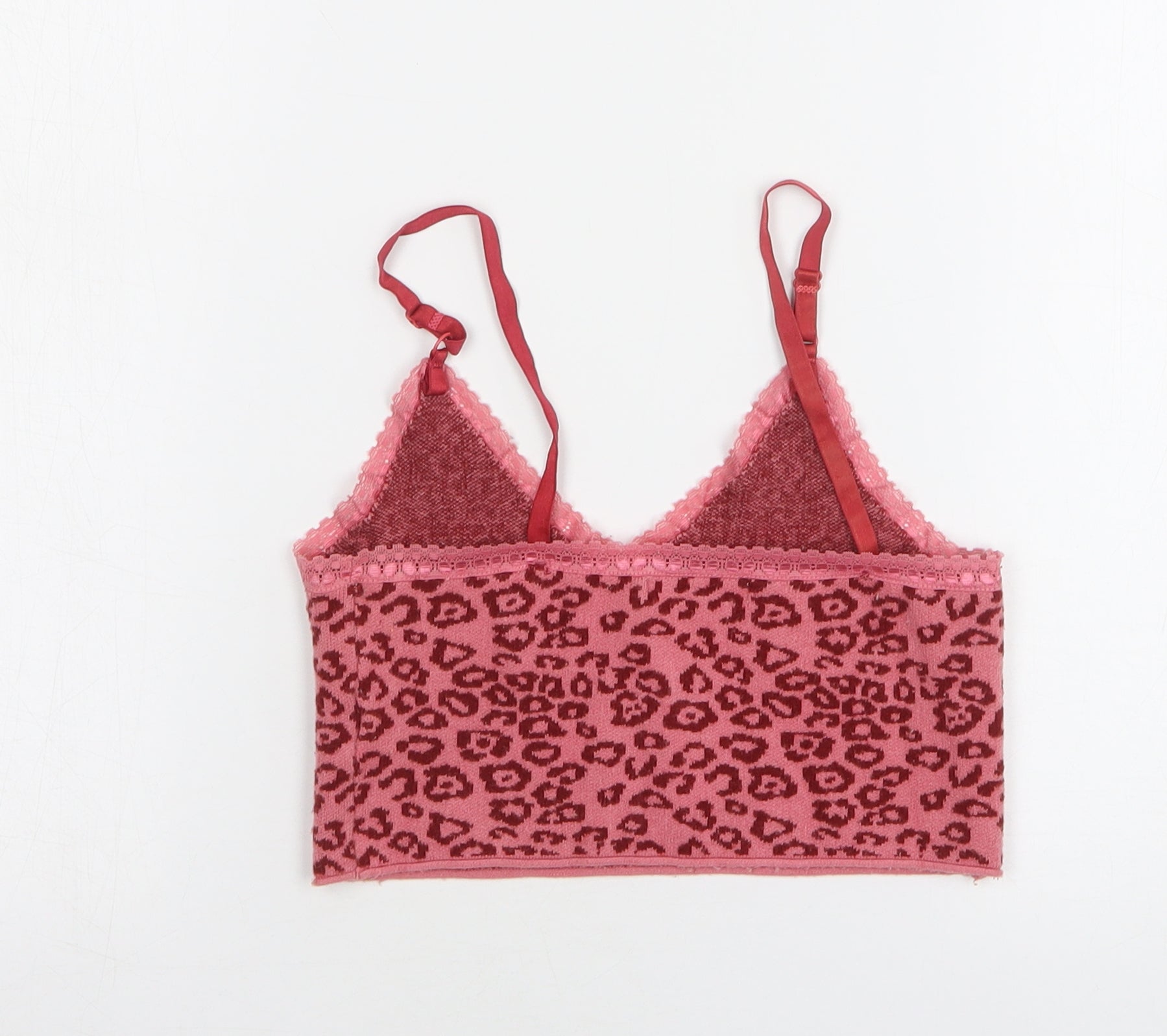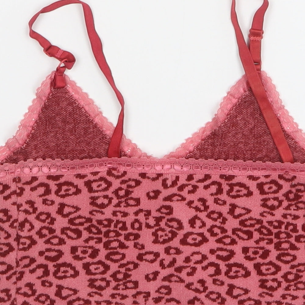 Shein Womens Pink Animal Print Polyester Cropped Tank Size 8 V-Neck