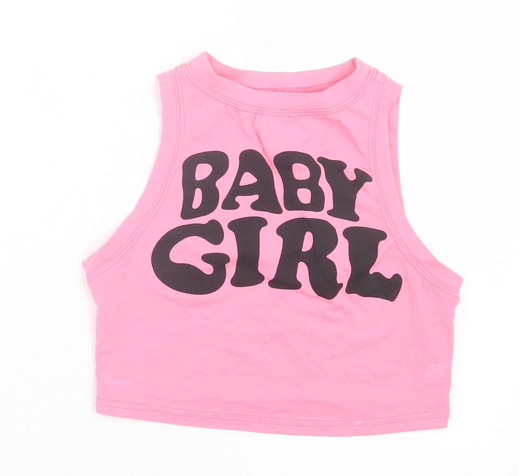SheIn Womens Pink Cotton Cropped Tank Size S Crew Neck - Baby Girl
