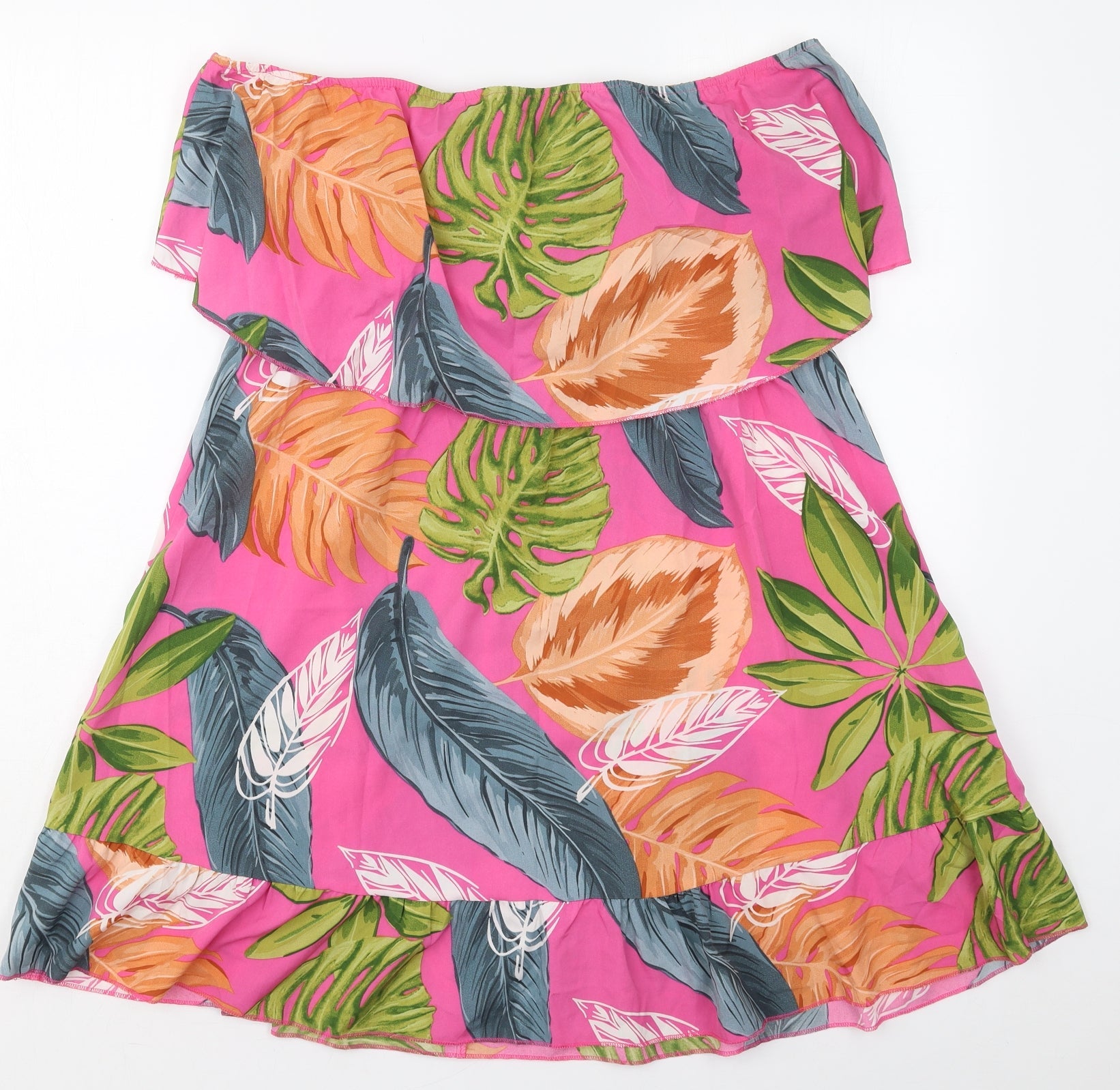 SheIn Womens Pink Floral Polyester A-Line Size XL Off the Shoulder Pullover - Leaf Prints
