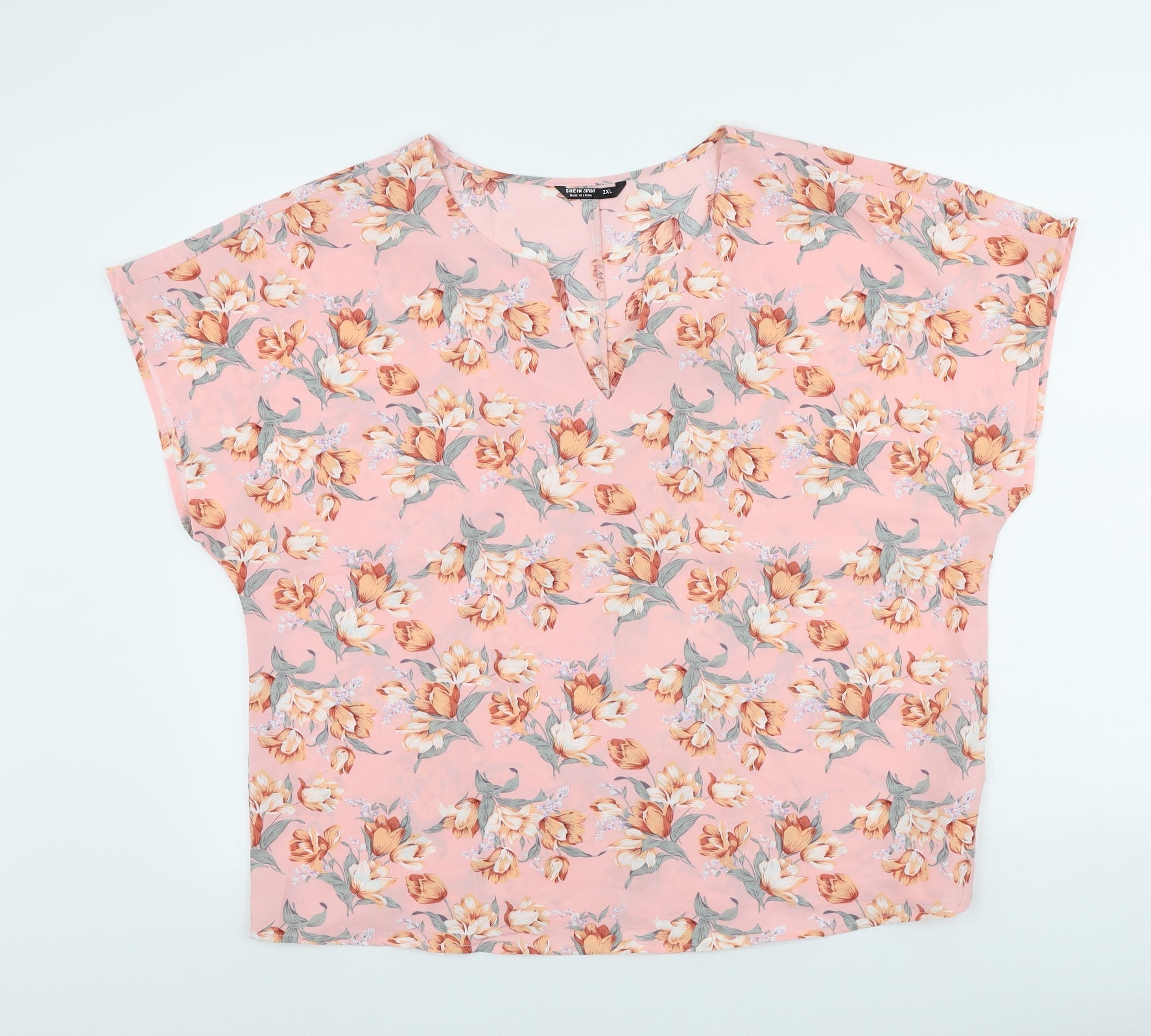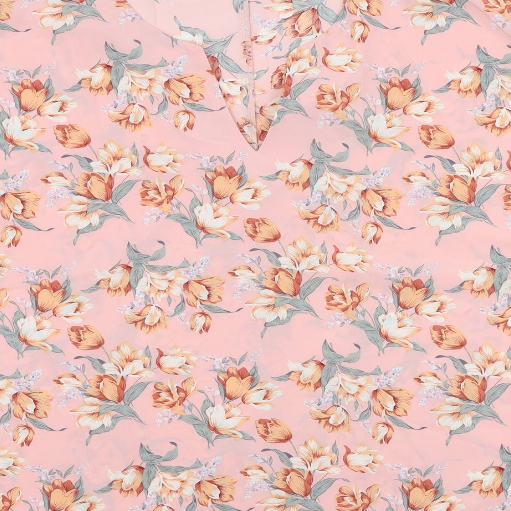 SheIn Womens Pink Floral Polyester Basic Blouse Size 2XL V-Neck