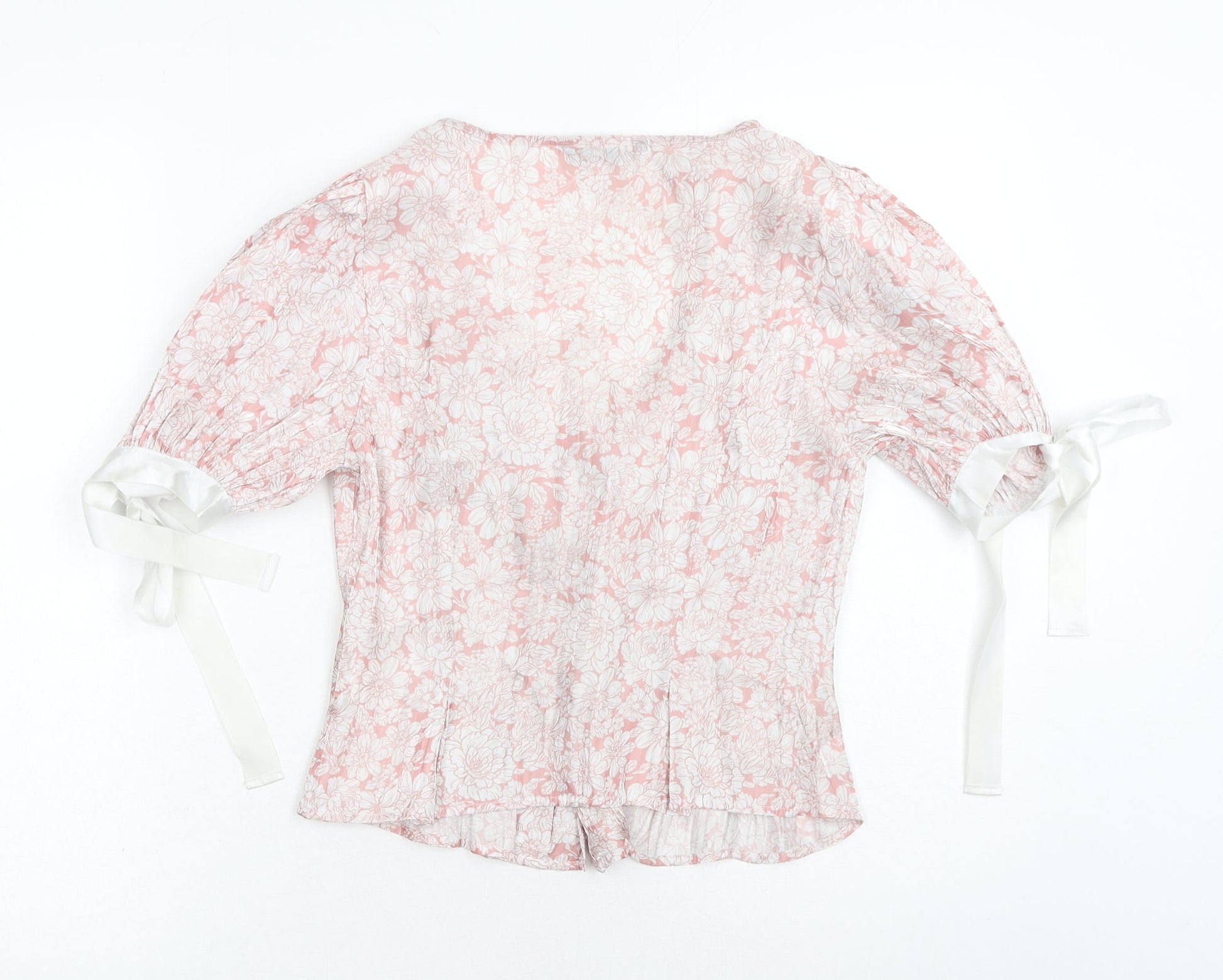 SheIn Womens Pink Floral Polyester Basic Blouse Size XS V-Neck