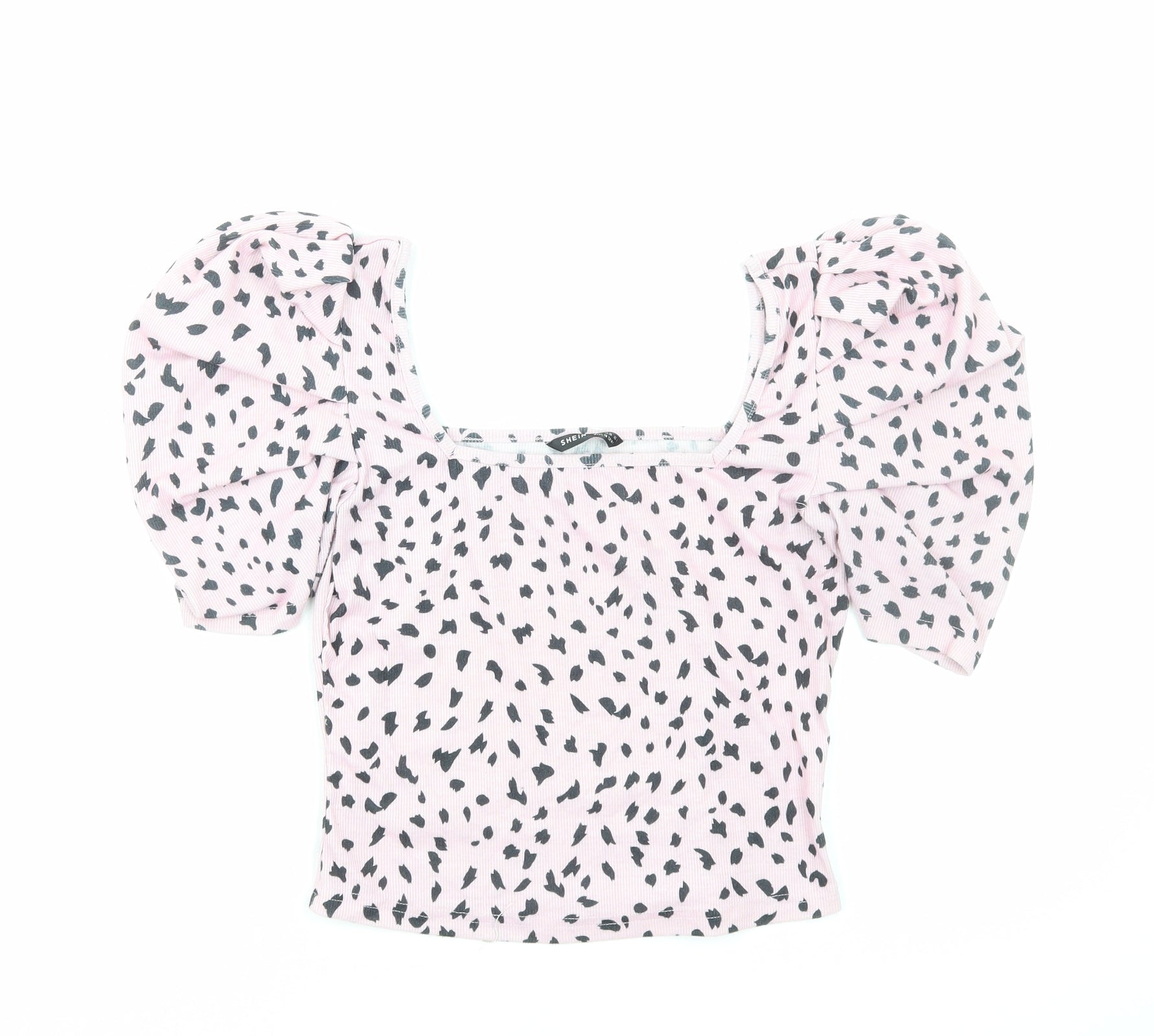 SheIn Womens Pink Geometric Polyester Basic Blouse Size S Round Neck