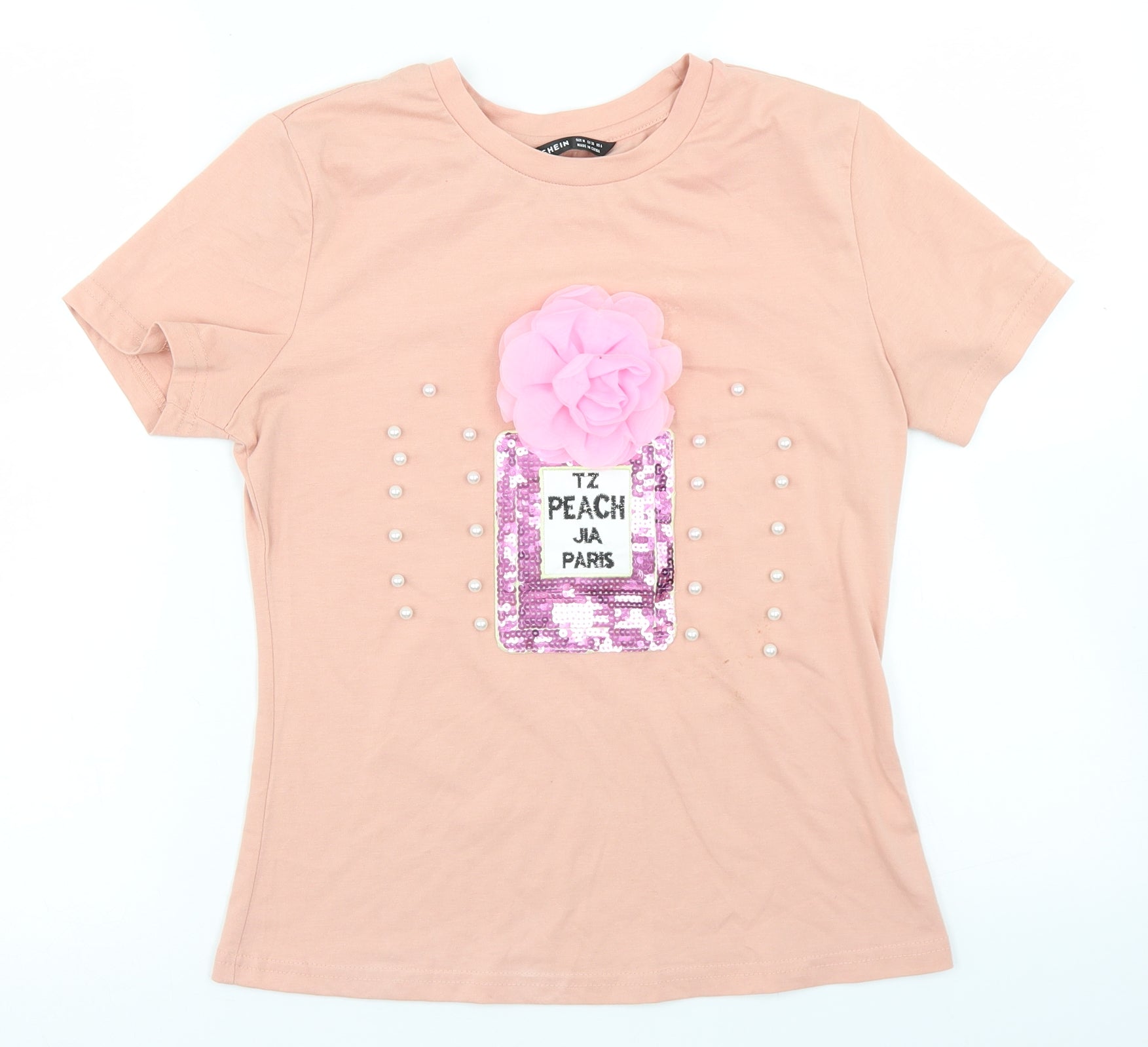 SheIn Womens Pink Polyester Basic T-Shirt Size M Crew Neck - Perfume