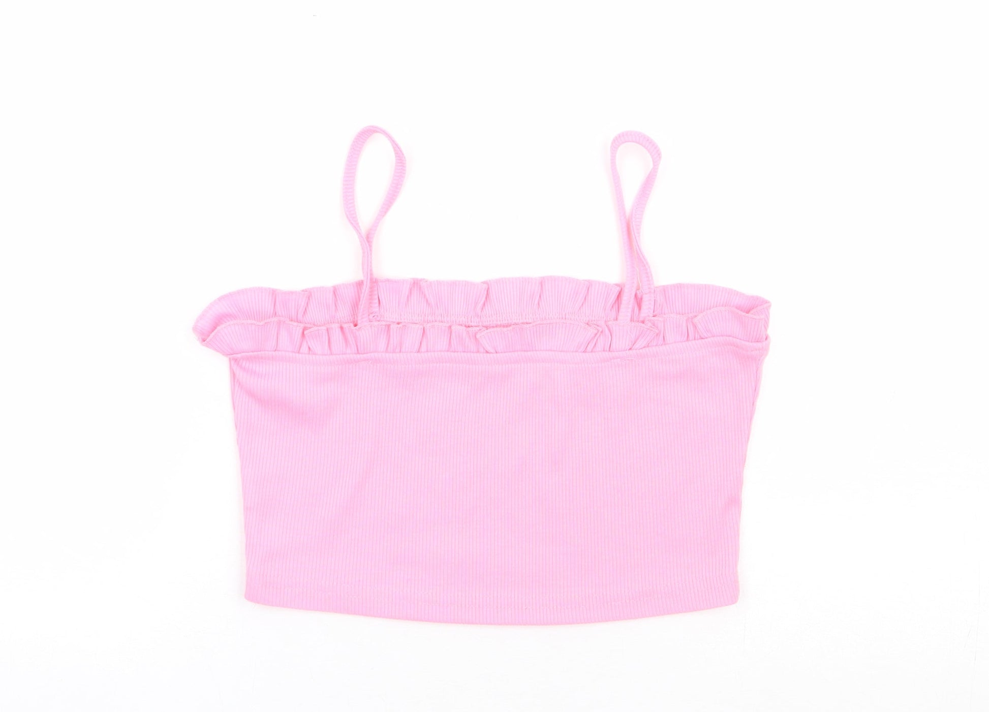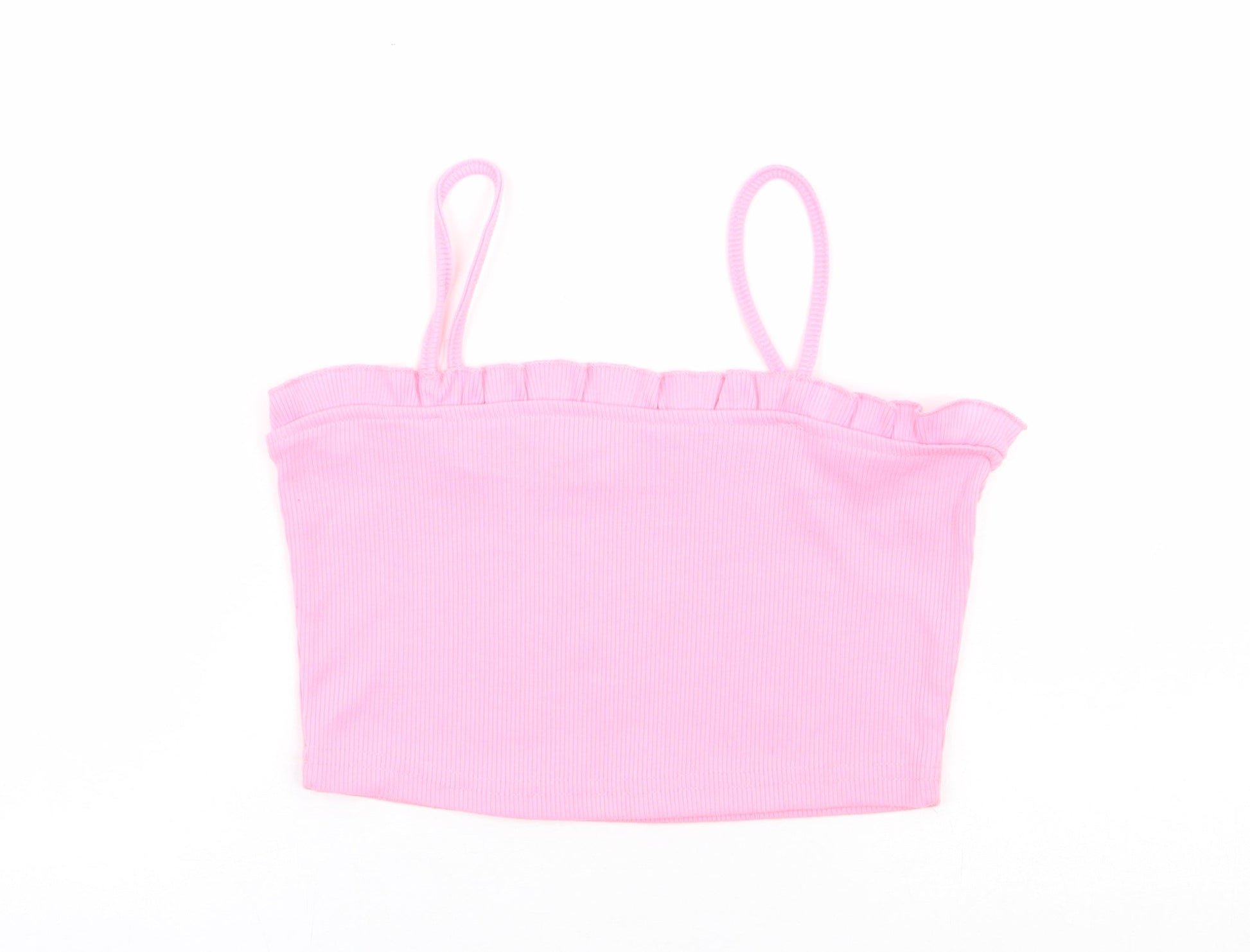 SheIn Womens Pink Polyester Cropped Tank Size S Square Neck - Ribbed
