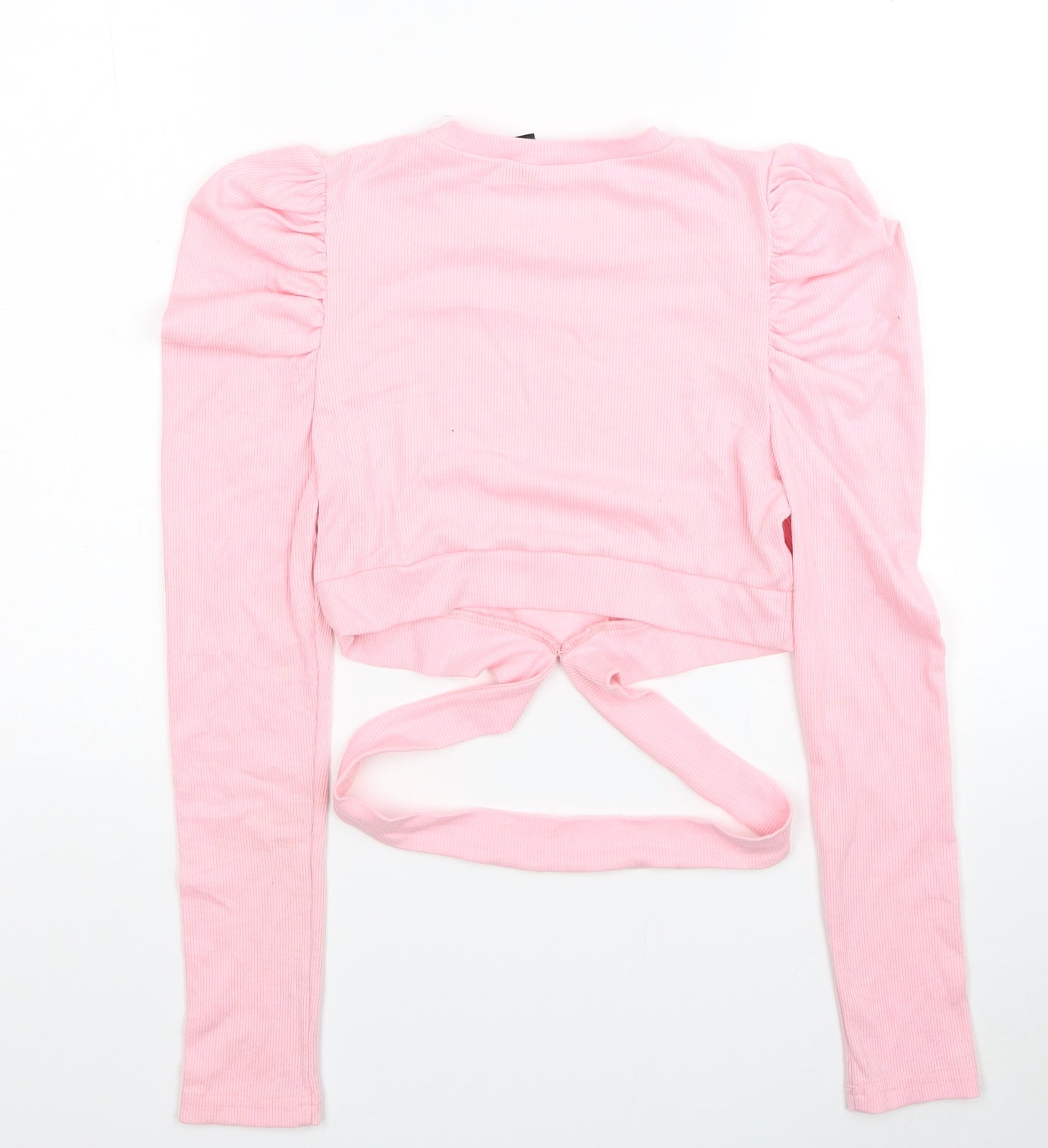 SheIn Womens Pink Polyester Jersey Blouse Size S Round Neck - Cut Out Detail