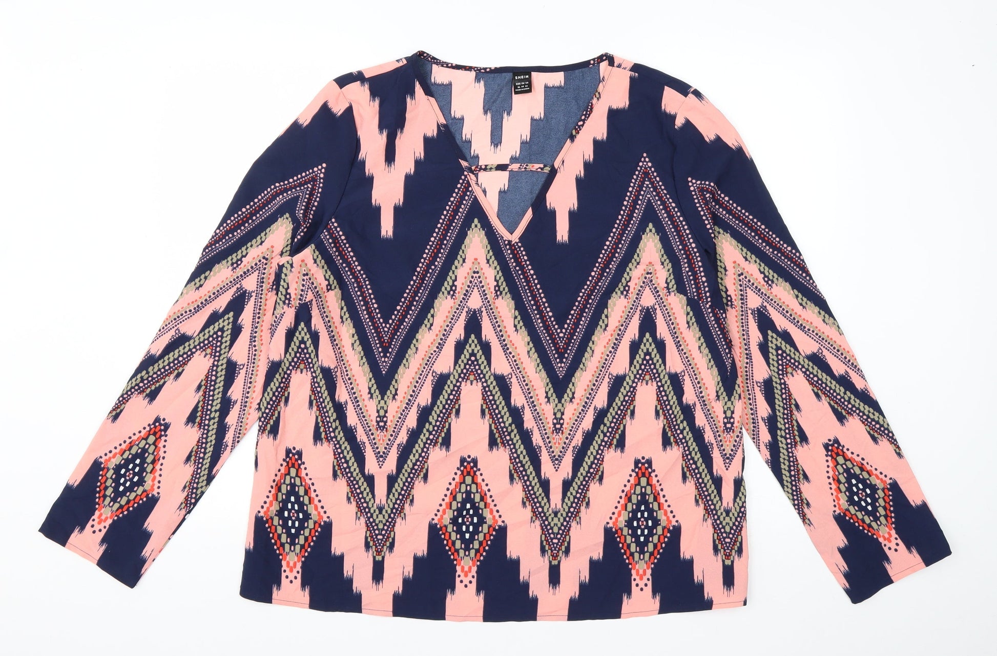 SheIn Womens Pink Striped Polyester Basic Blouse Size XL V-Neck