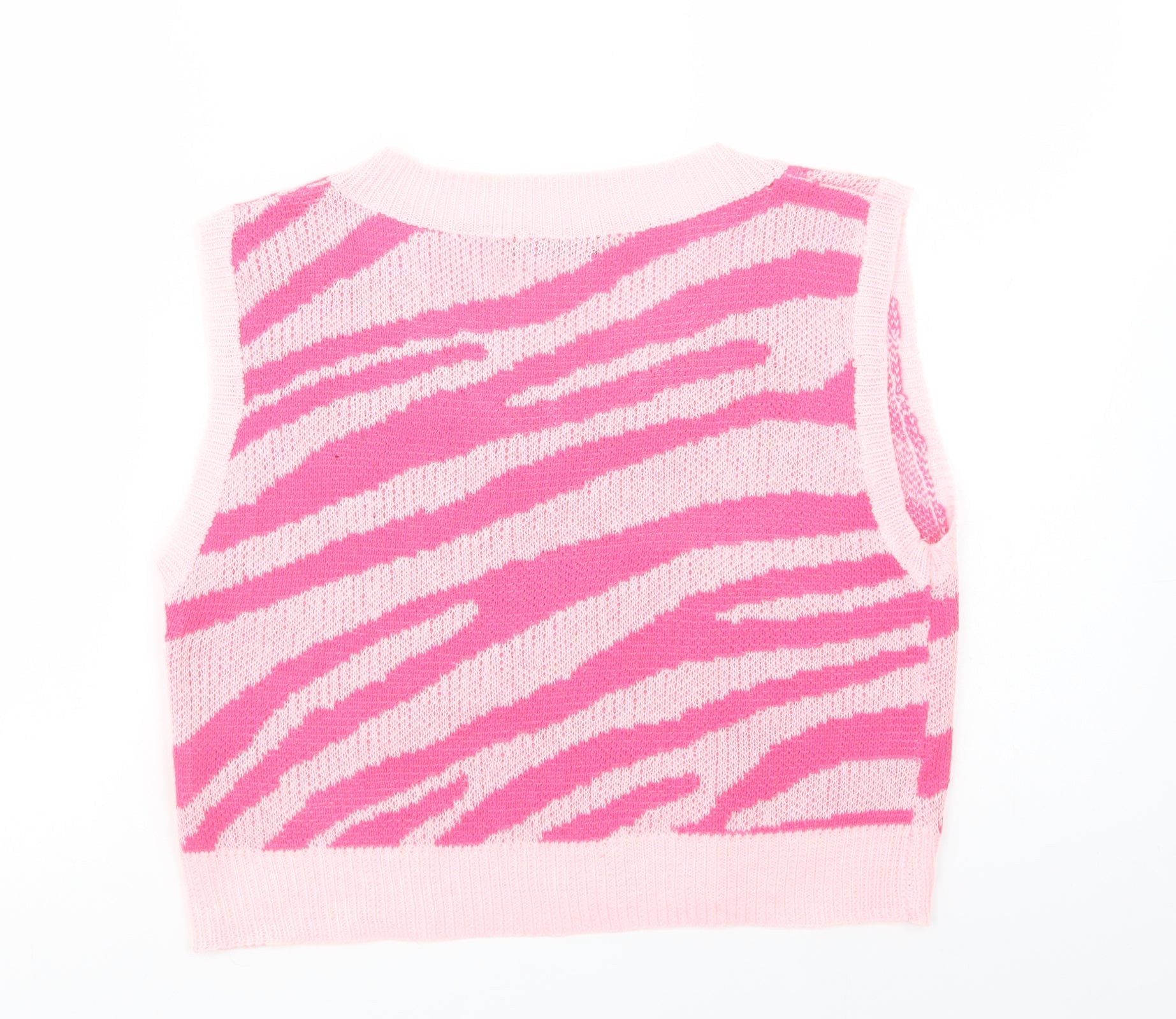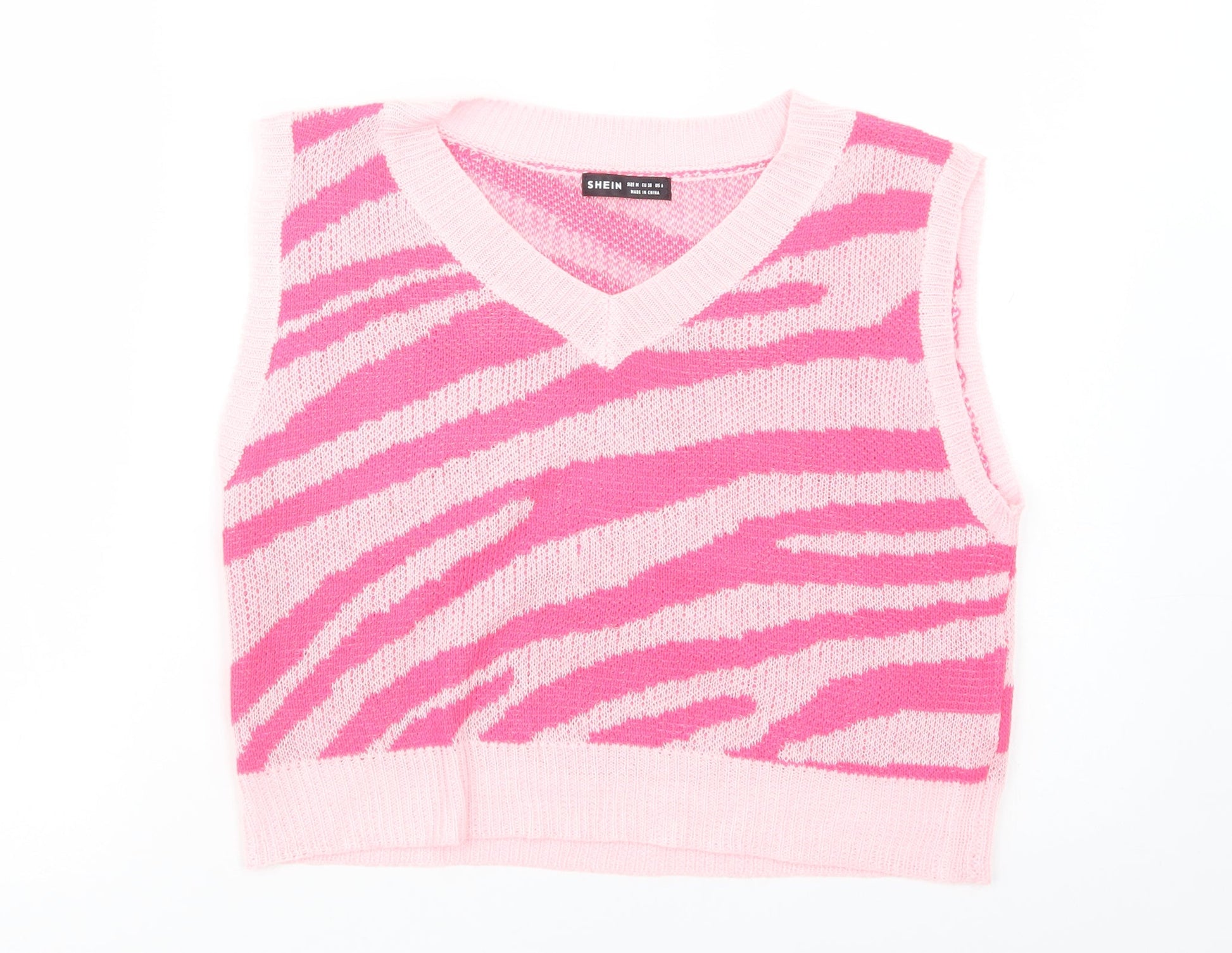 SheIn Womens Pink V-Neck Animal Print Viscose Vest Jumper Size M
