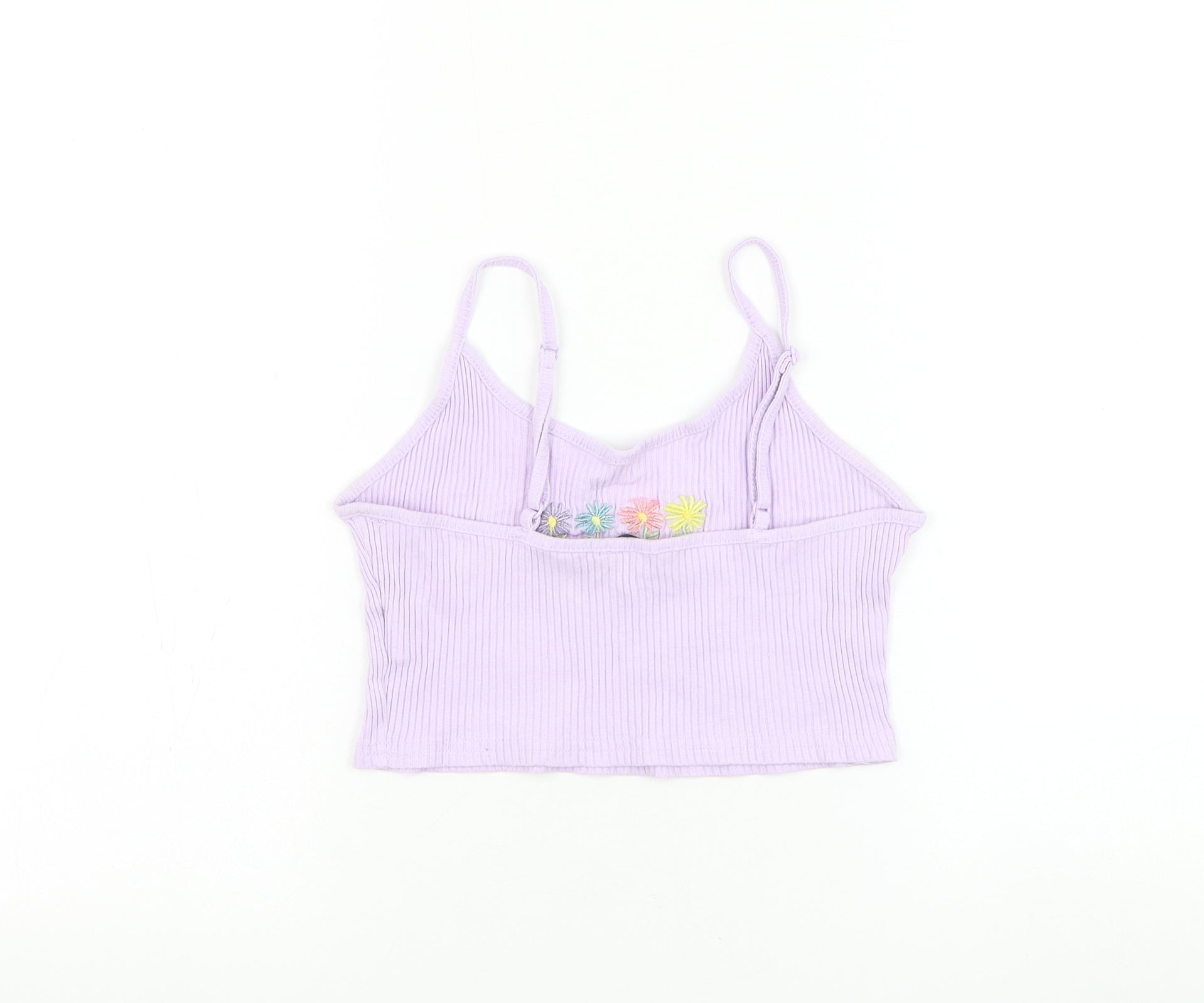 SheIn Womens Purple Cotton Cropped Tank Size M Round Neck - Flower