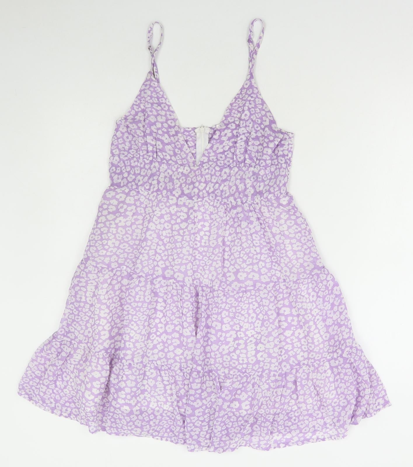 SheIn Womens Purple Floral Polyester A-Line Size S V-Neck Zip