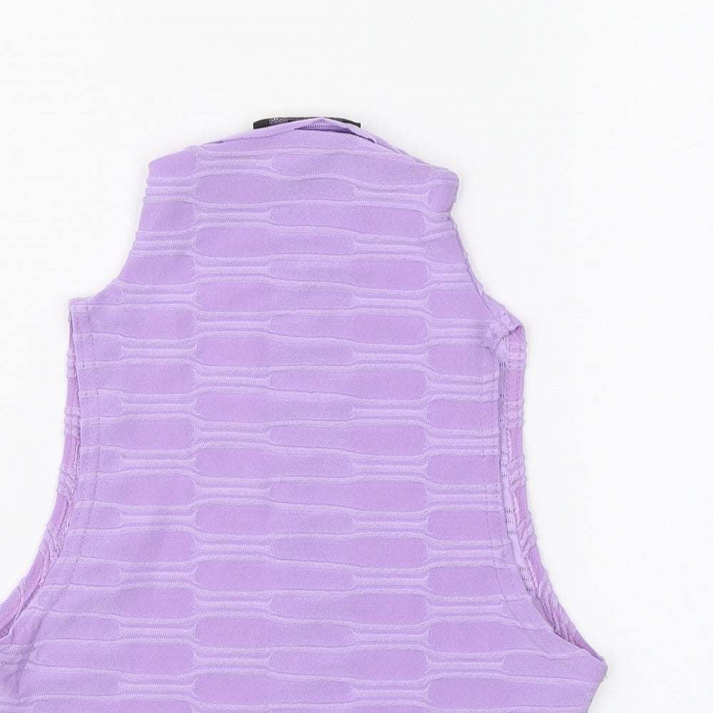 SheIn Womens Purple Polyester Basic Tank Size 8 High Neck