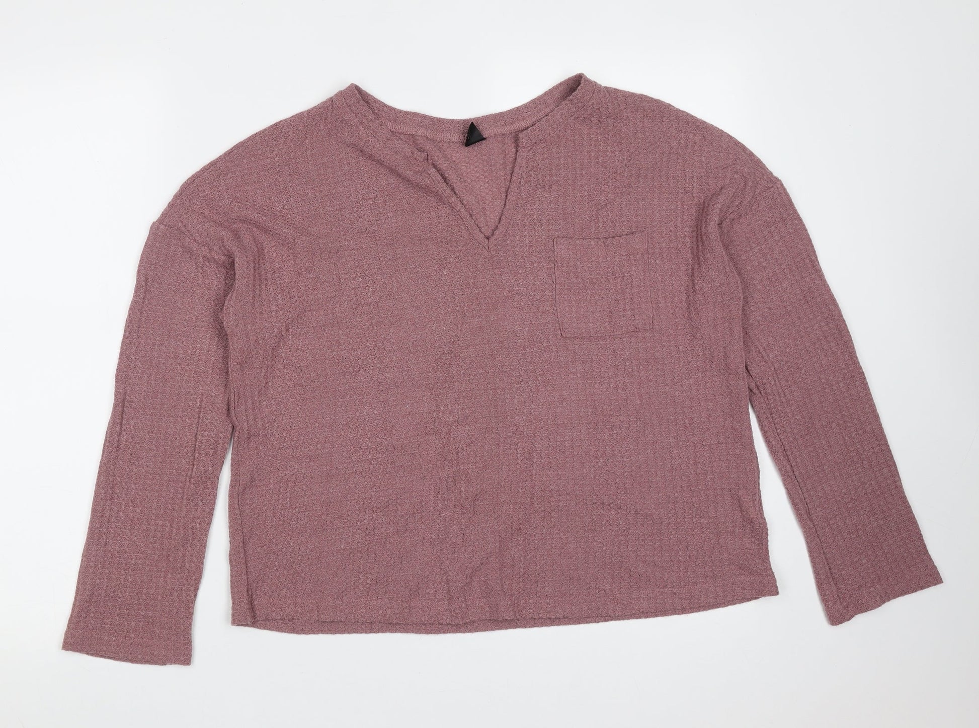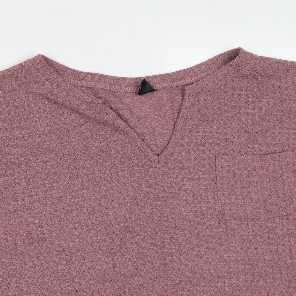 SheIn Womens Purple V-Neck Polyester Pullover Jumper Size L - waffle knit