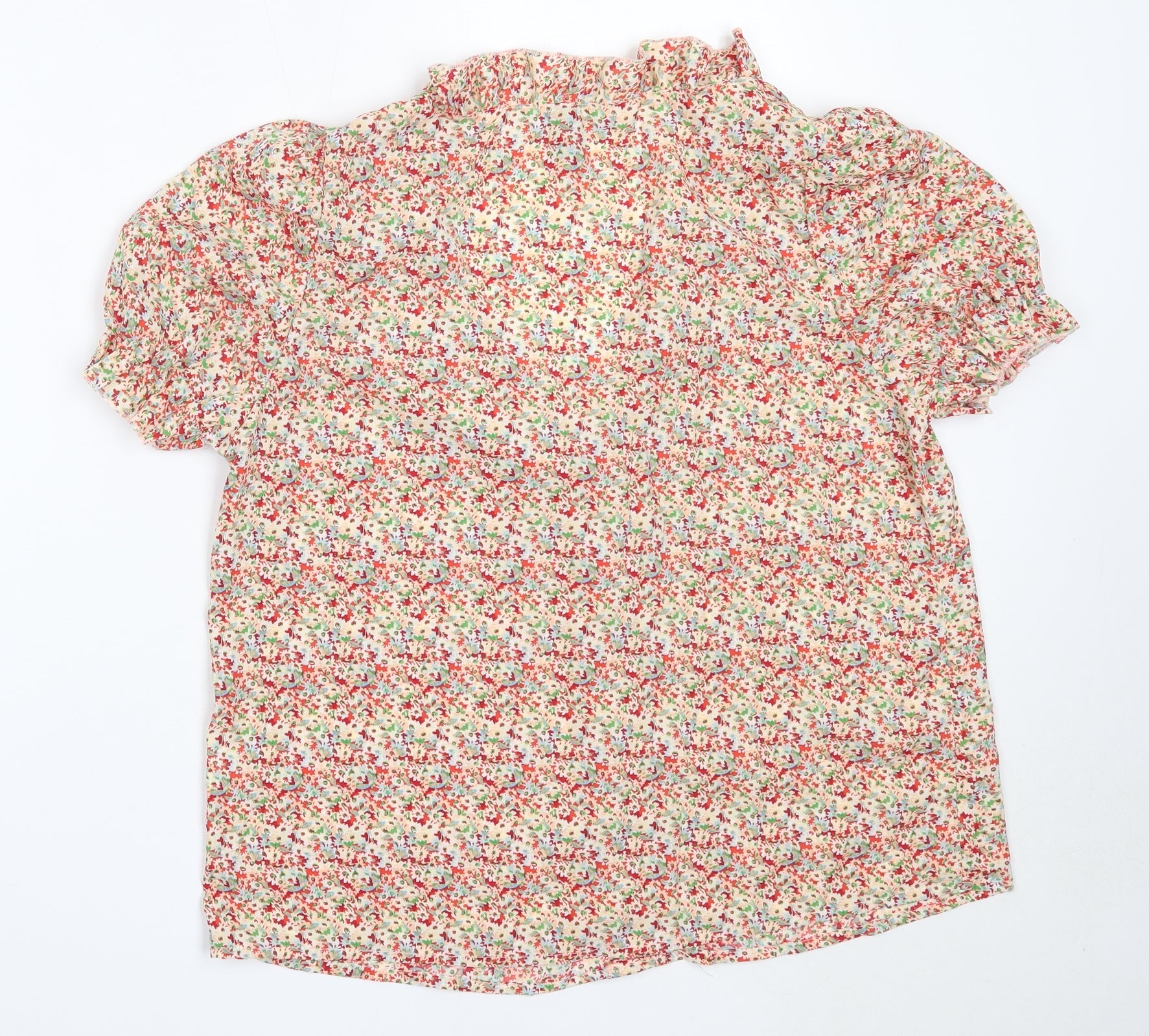 SheIn Womens Red Floral Polyester Basic Blouse Size L V-Neck