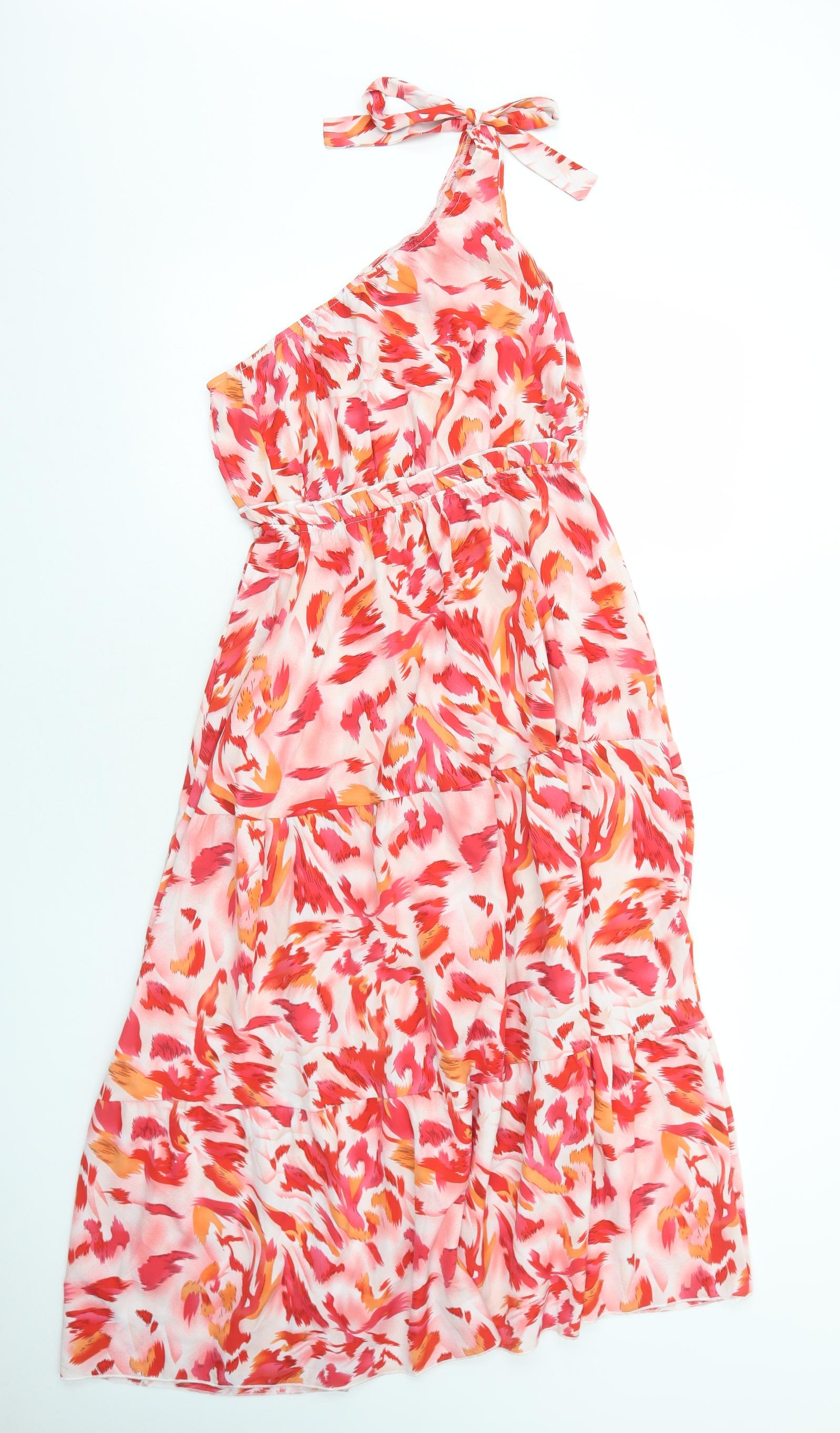 SheIn Womens Red Geometric Polyester Trapeze & Swing Size S One Shoulder Pullover