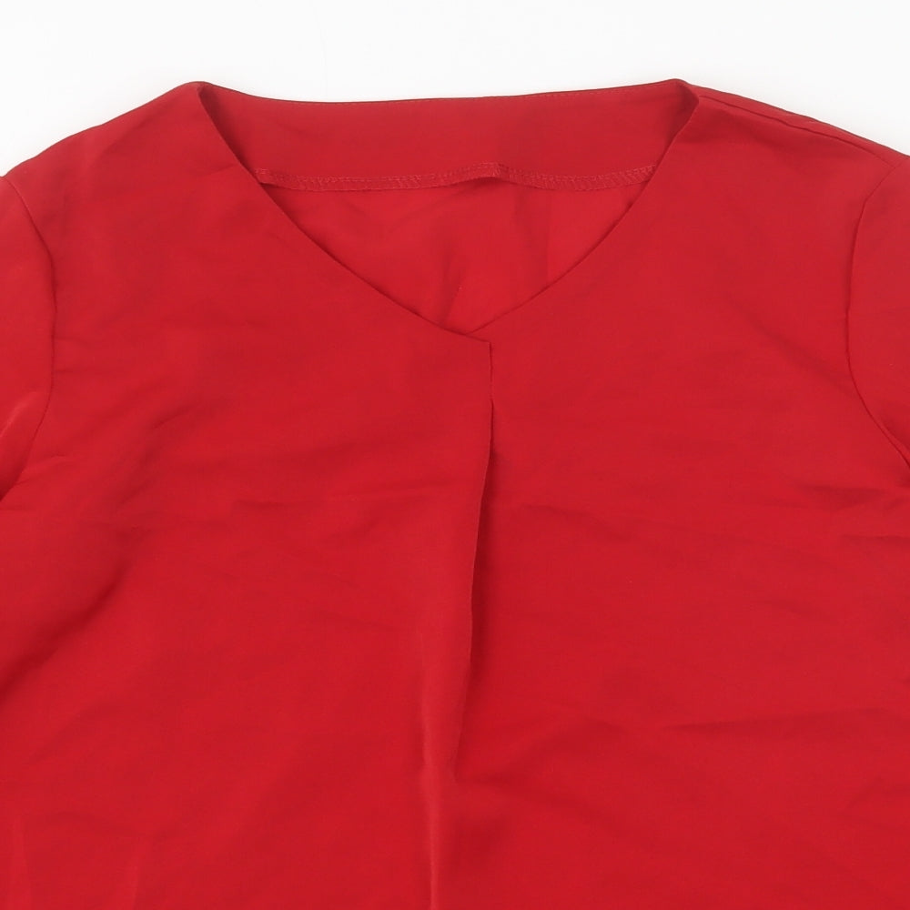 SheIn Womens Red Polyester Basic Blouse Size S V-Neck