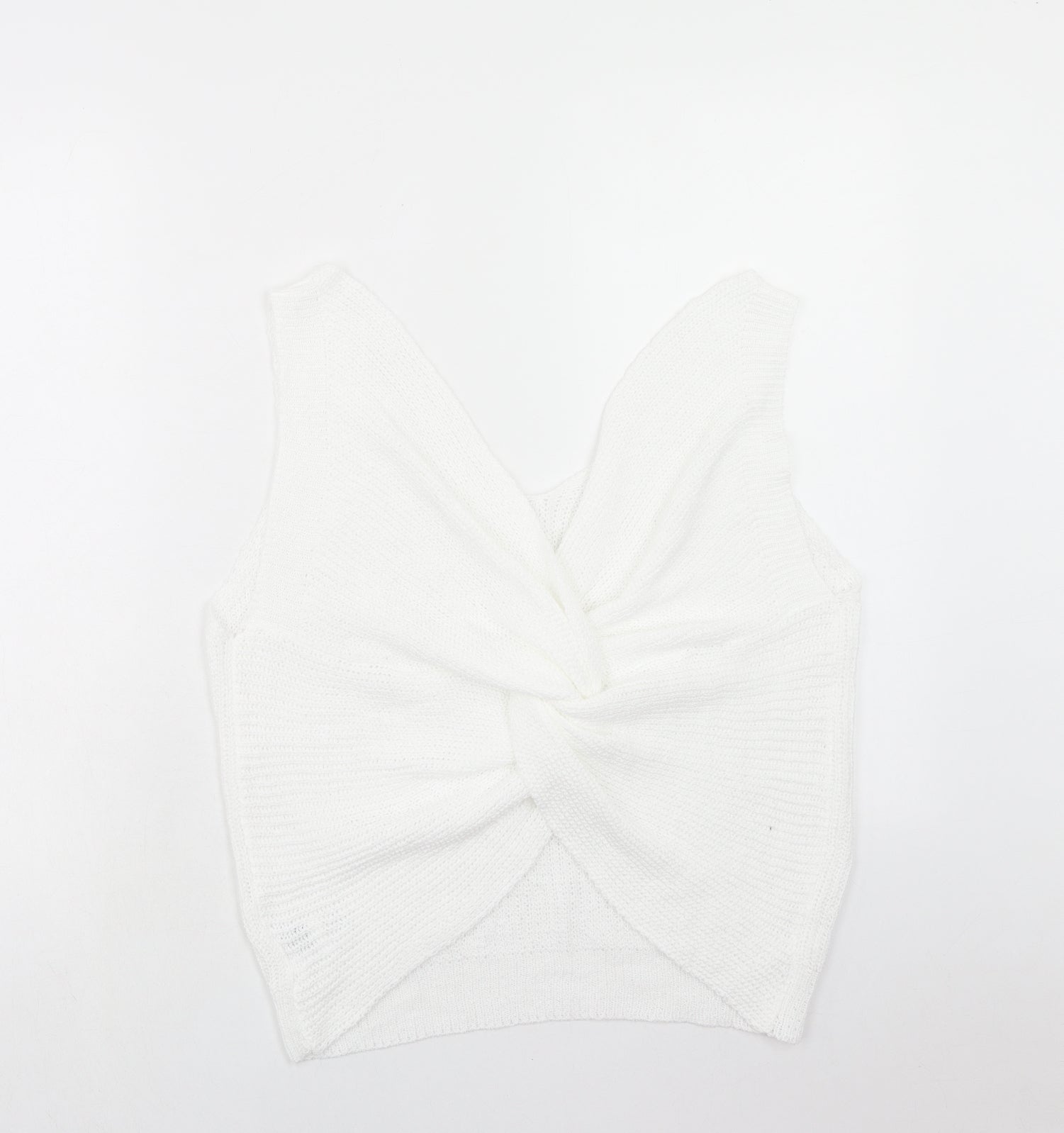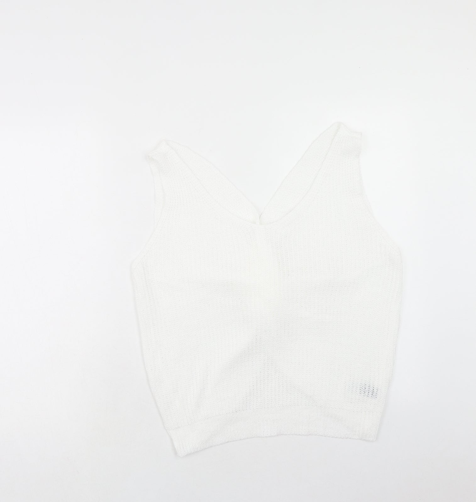 SheIn Womens White Acrylic Basic Tank Size XL V-Neck