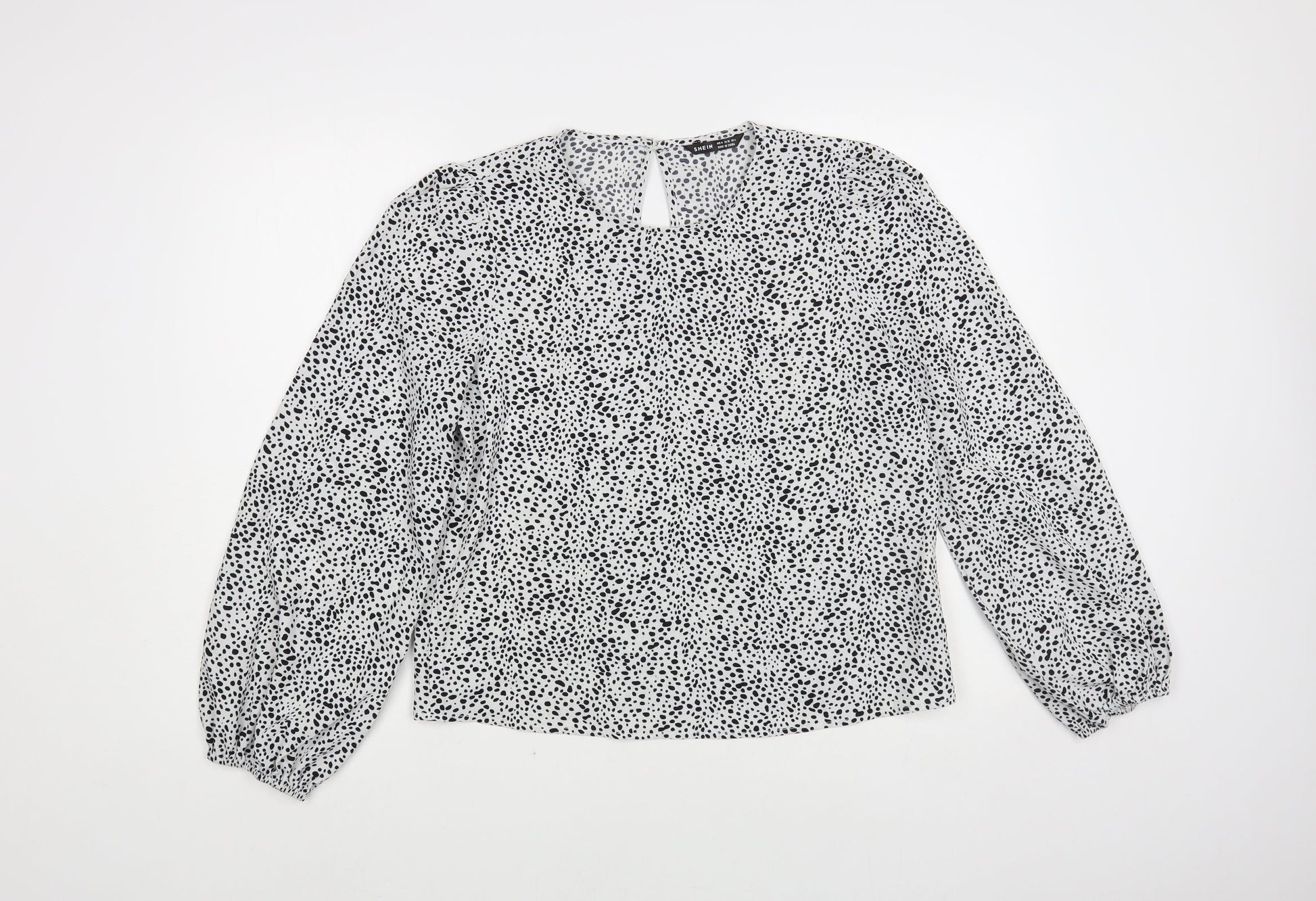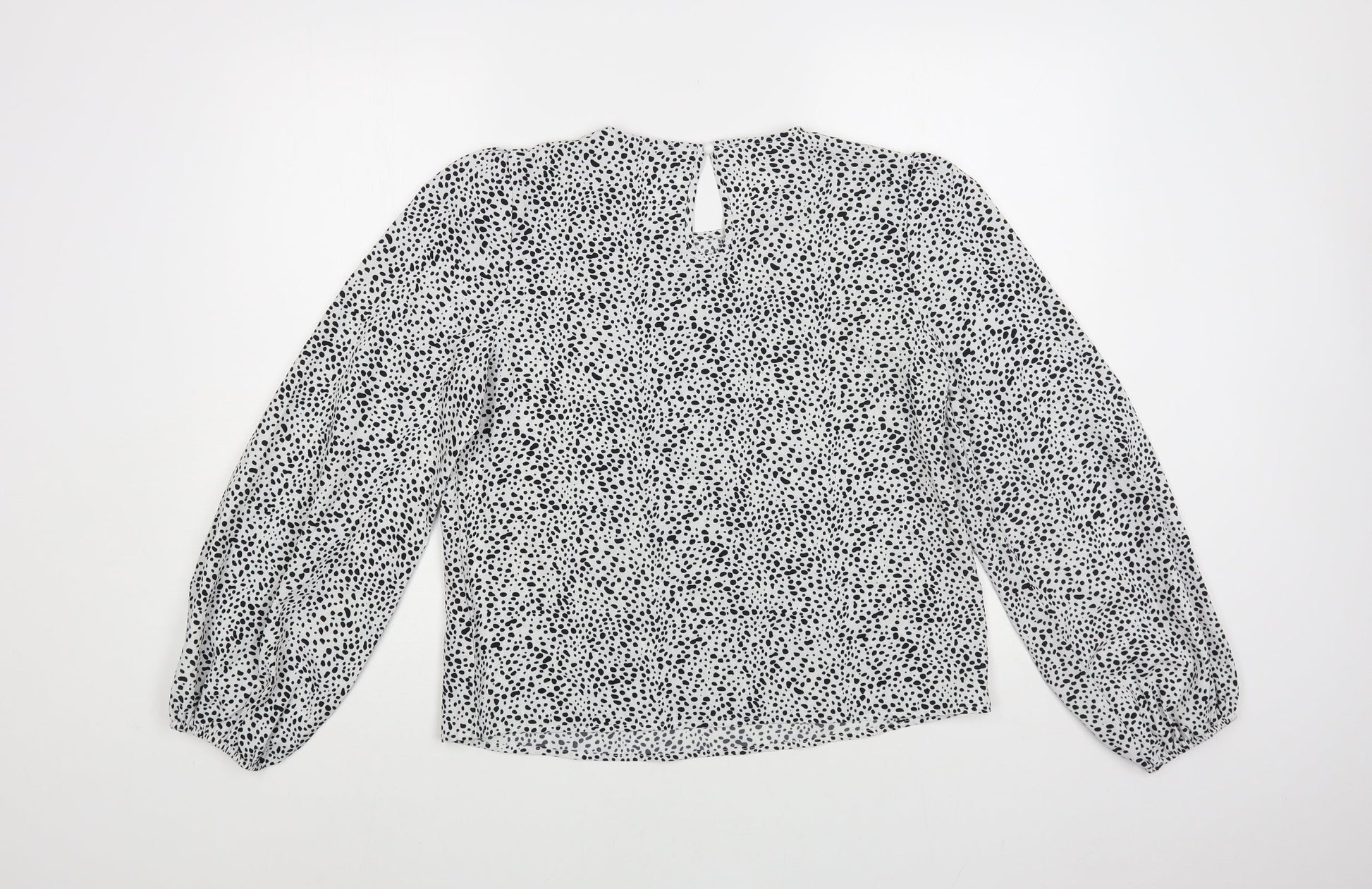SheIn Womens White Animal Print Polyester Basic Blouse Size M Round Neck
