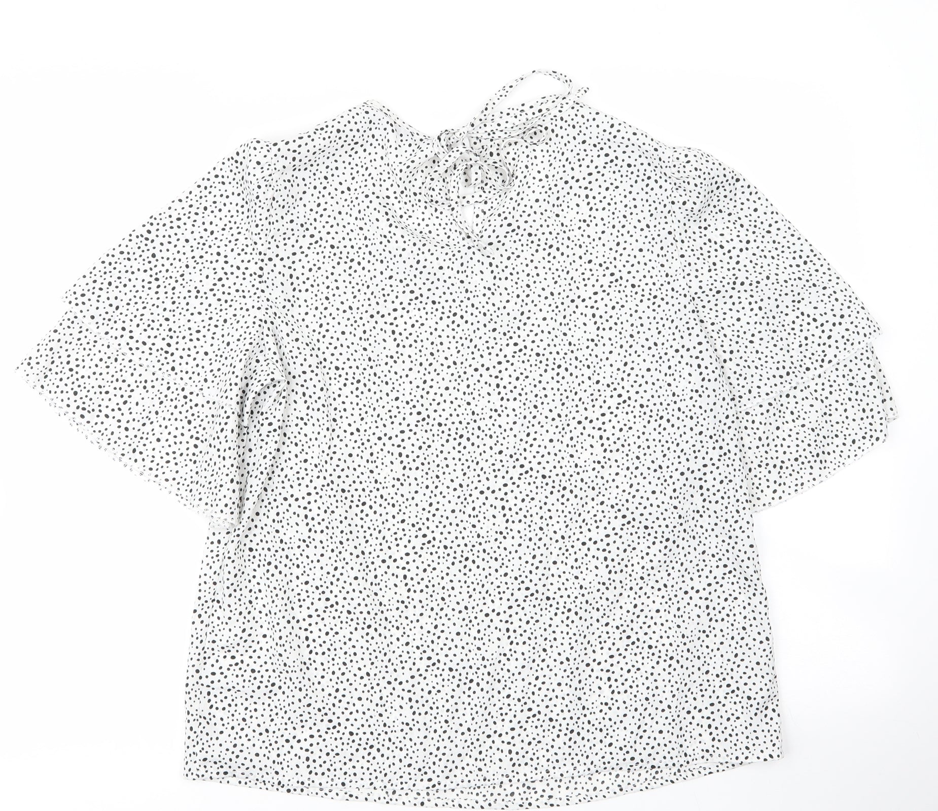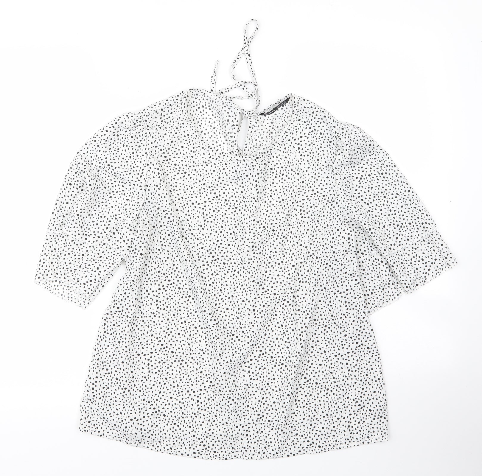 SheIn Womens White Animal Print Polyester Basic Blouse Size M Round Neck - Leopard print